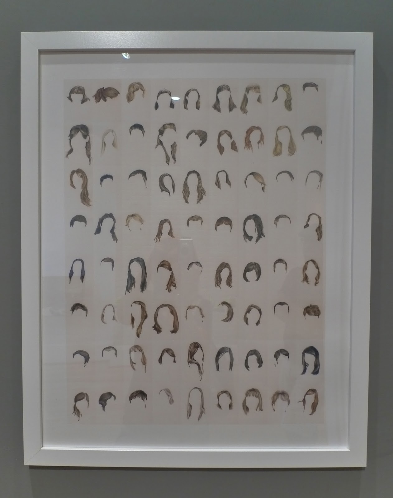 Other works in the show are more ironic. “The Jerks” is a collection of hairdos without faces by Chloe Watson and is depicted in a book and print format. Grayson Cox’s screenprinted pillows are a fun departure from traditional printmaking. They transform banal imagery into contemporary pop art and emphasize the aesthetic quality of pillows, quite separate from their typical function.