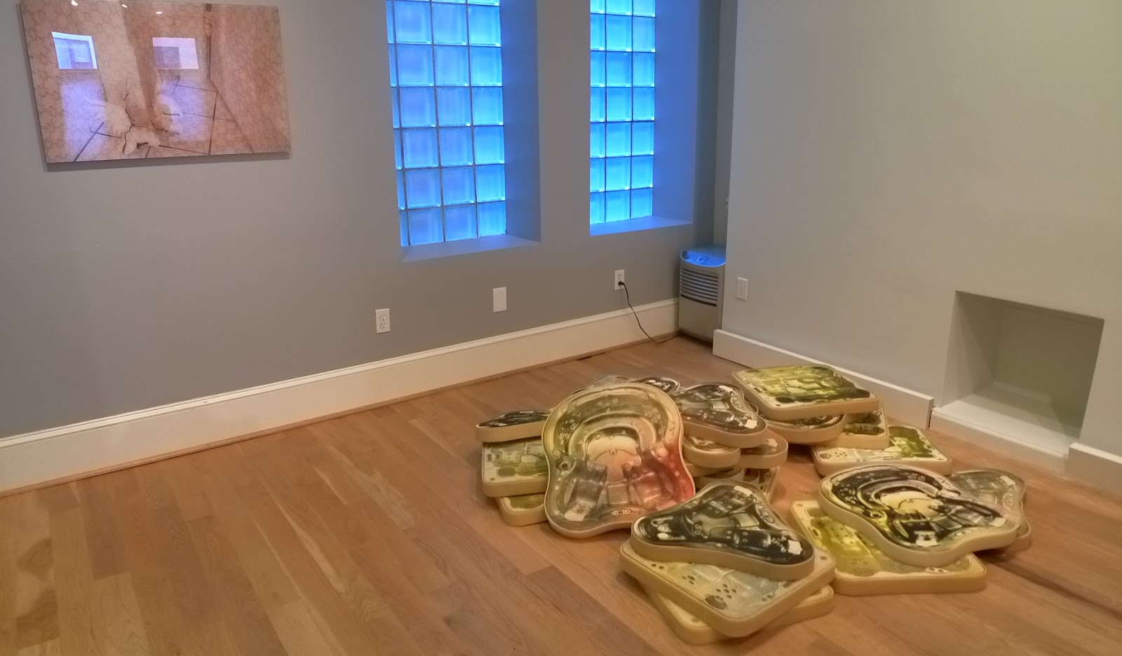 The current exhibit, Comfort Zone, the first in the new location, is no exception. Malin and guest curator Lou Joseph, founder of the ICA Baltimore, worked through many drafts his curatorial statement, honing his ideas in a collaborative process, as opposed to simply showing up and hanging some artwork. The group exhibit features Grayson Cox, Ryan Hoover, Kim Faler, and Chloe Watson and examines expectations of privacy and comfort from the inside out. All four artists appropriate and recycle common items and images to present a skewed vision of domestic life.