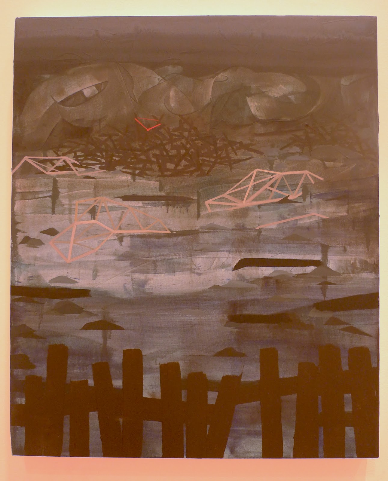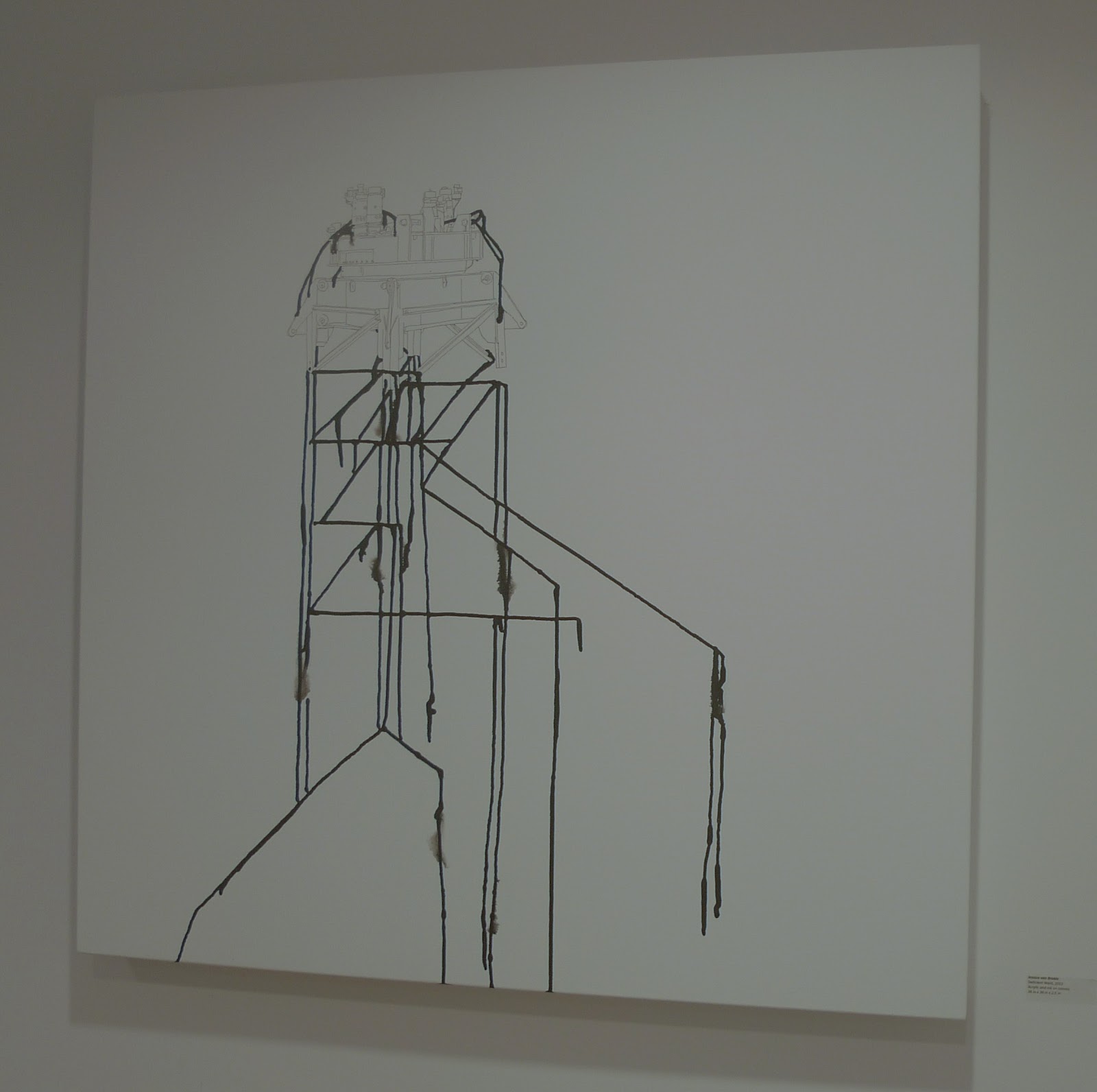 Jessica van Brakle’s work combines painting and drawing, mixing manmade structures with natural, organic elements to relate conflicting worlds that co-exist in one psychological space. Stripped down to a skeletal level, the intricate geometric lines of construction cranes become symbols of power, growth, and the possible “paved paradise” of the 20th century.
