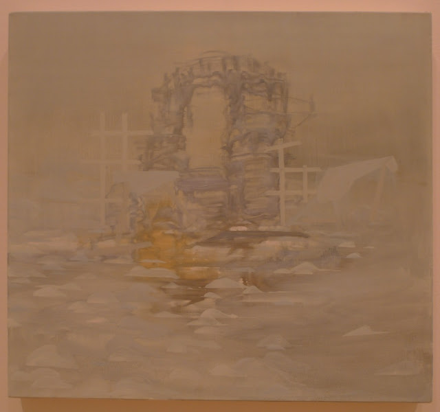 Magnolia Laurie’s paintings and installations show delicate and makeshift systems and structures that may not endure their own weight, let alone impending disruptions. Referencing modern architecture, nomadic cultures, and the nesting habits of bowerbirds, the works depict the instinctive, sometimes-manic act of building.