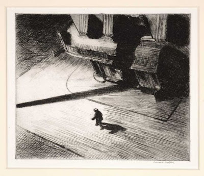 Here are three images for you. First, Edward Hopper (American, 1882-1967) Night Shadows, 1921.