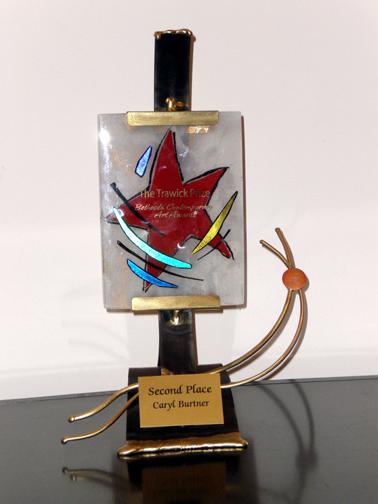It is common knowledge that, when you win the Trawick Prize, the contemporary art award sponsored by philanthropist Carol Trawick and The Bethesda Urban Partnership, you will be handed a check for $10,000. No waiting for it to come in the mail, either. They hand it to you in person, under the hot spotlights, the night of the exhibit and awards, and then you must make a shocked and stuttering speech. What most people DON’T know is that each first, second, and third prize winner receives a handmade trophy (pictured above) that easily weighs five pounds. Or more. Like the prize, the trophy is dense and substantial. It will change your life. Or at least your biceps if you choose to carry it around.