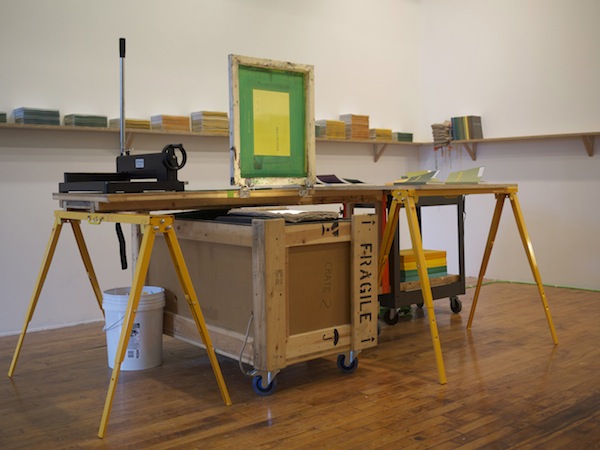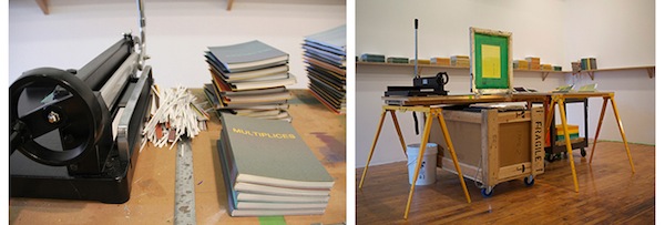 Screen print, color and B&W photocopy, diazotype and offset pages with an offset cover. And some foil tape too.
