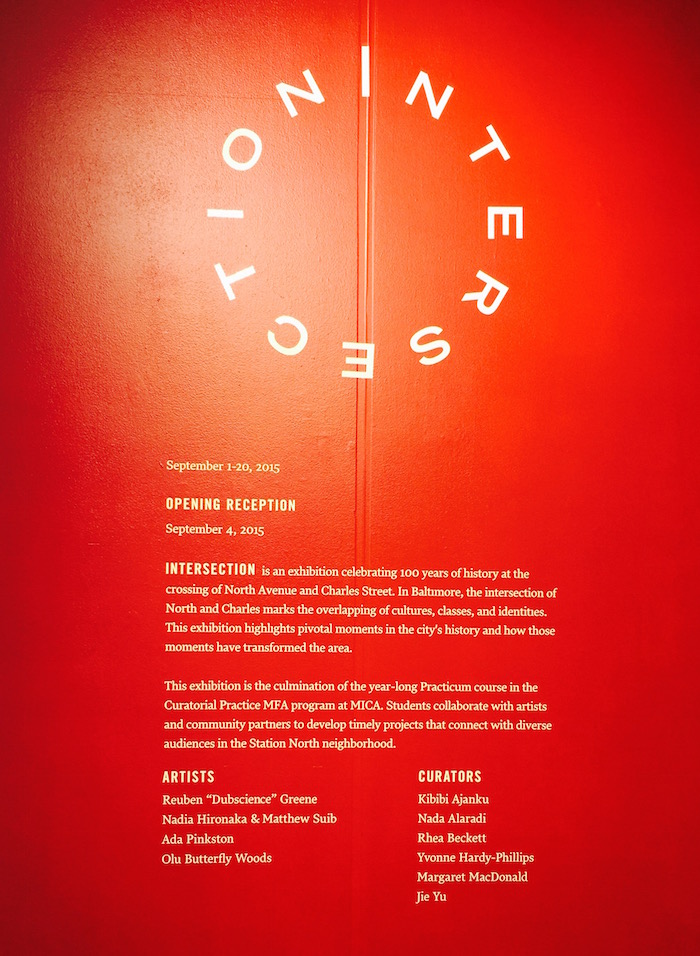 Intersection is the culminating project of a yearlong practicum course for MICA Curatorial Practice students. The exhibition investigates the intersection between North Avenue and Charles Street through a combination of research, documentation, and contemporary art. I sat down with Margaret MacDonald, one of the six curators, to talk about the exhibition.