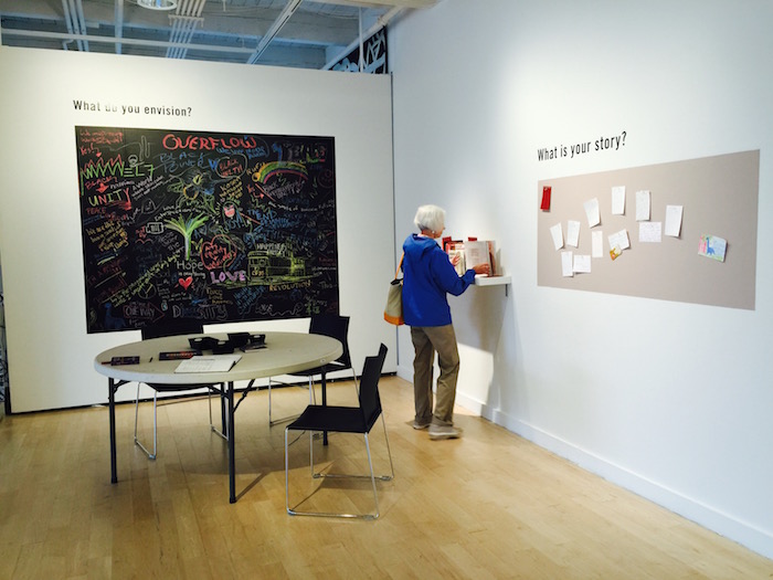 We actually got additional funding for doing that workshop, because we really wanted to have that education component and we knew pretty early on that we wanted to include it in the exhibition. We liked the idea of bringing that component into the gallery space. We did know that was going to happen, it turned out to be the perfect piece.