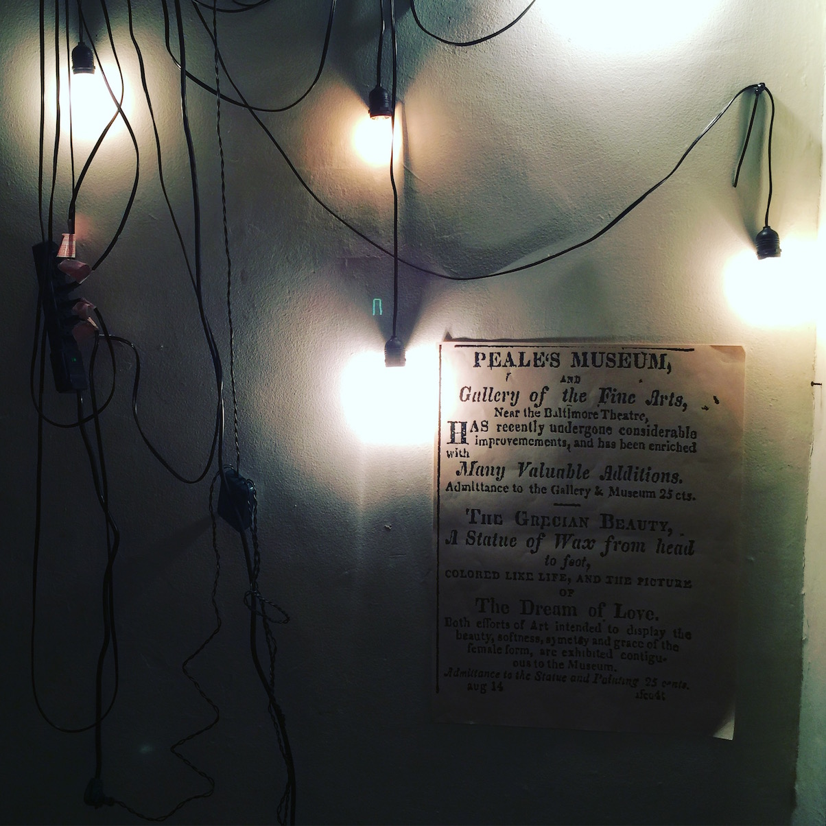 Most obvious is the stuff we’re looking at itself. The installations are comprised almost entirely out of the historical material that conventional institutions and businesses didn’t want—whether that be the salvaged architectural and construction objects obtained from the Loading Dock or the various things left over from the Peale’s incarnation as the anchor to the Baltimore City Life Museums. The City Life consortium was established in the mid 1980s by a city bond issue, and was set to include Brewer’s Park, the Carroll Mansion, the Center for Urban Archaeology, the H. L. Mencken House, the John Hutchinson House, the Morton K. Blaustein City Life Exhibition Center, the Phoenix Shot Tower. The City Life Museums closed June 21, 1997, and their various holdings were parted out. In 1999 the city sold the John Hutching House to a couple that turned it into the 1840s Carrolton Inn bed and breakfast. A private nonprofit group took over the Carroll Mansion. The Maryland Historical Society took over whatever material object holdings it deemed important.