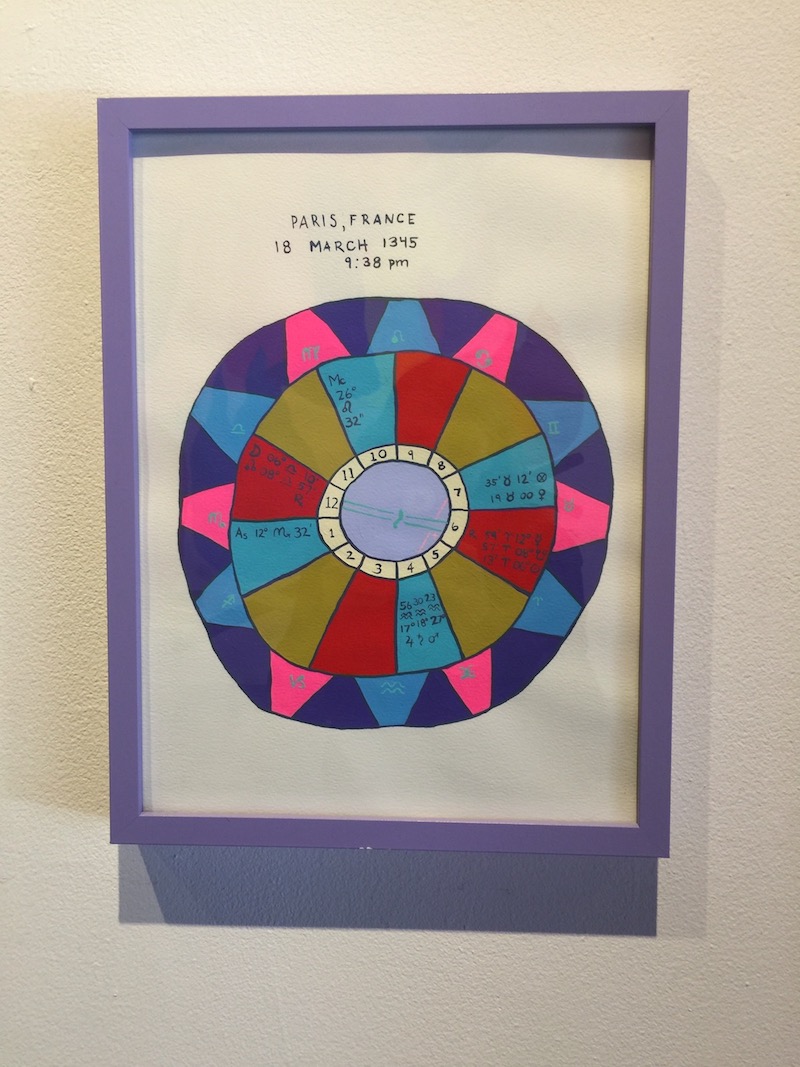 I didn’t know any of this when I first visited Macon Reed‘s solo exhibit titled Who’s Afraid of Magic? The first thing I noticed was this show, produced by ICA Baltimore and hosted at Spacecamp, fills the cavernous space in an ambitious, convincing way. The artist’s use of cute cartoon shapes and Day-Glo candy color makes the exhibit feel, at first glance, cheery in a Yo Gabba Gabba way. Then you notice the gallows. And the handcuffs. And the weird pincher tongs. And the stylized dresses clustered in the middle of a circle of fire.