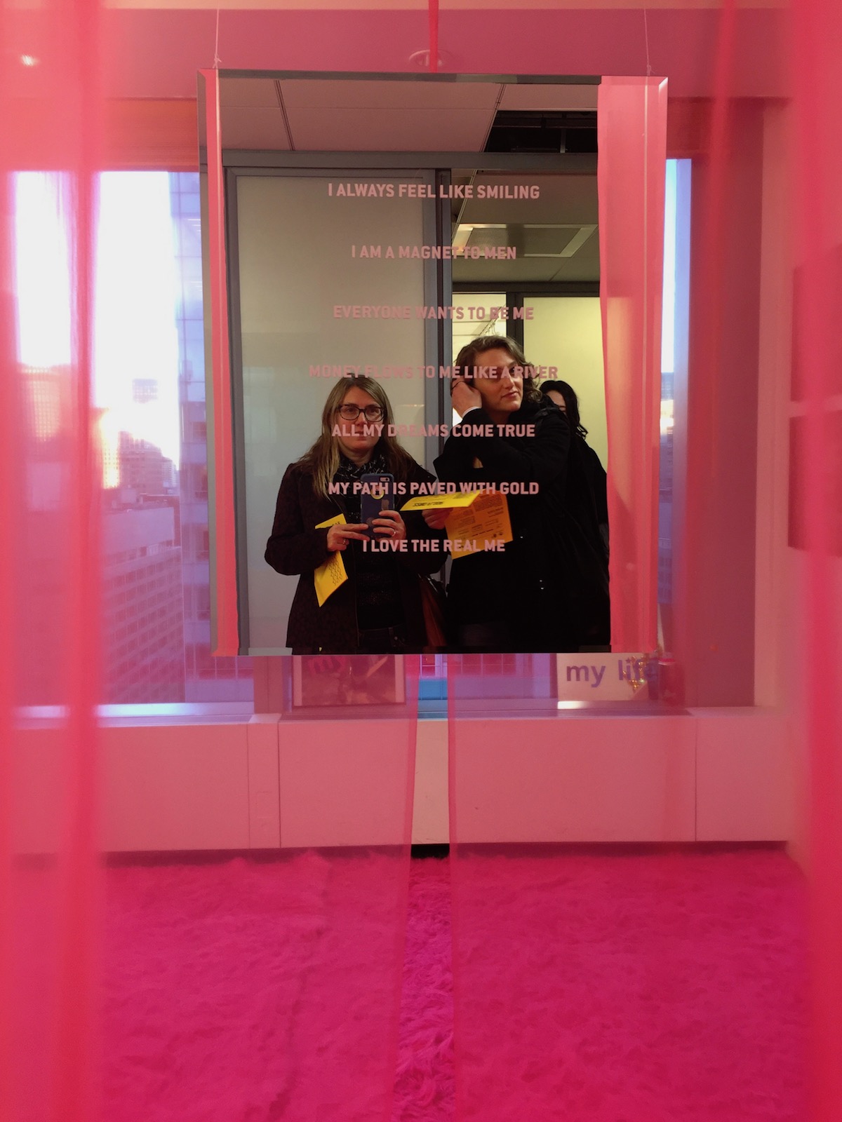 Spring/Break showcased a remarkable number of emerging and known artists in surprising ways. Making use of the old Condé Naste office building in Times Square, Spring/Break took over conference rooms, executive offices and secretary bays to give its viewers a taste of this year’s theme, Black Mirror.