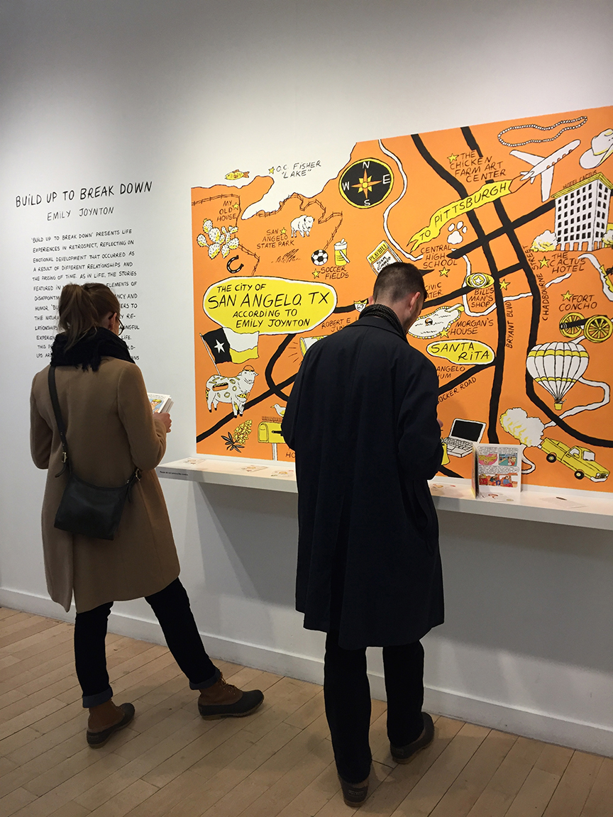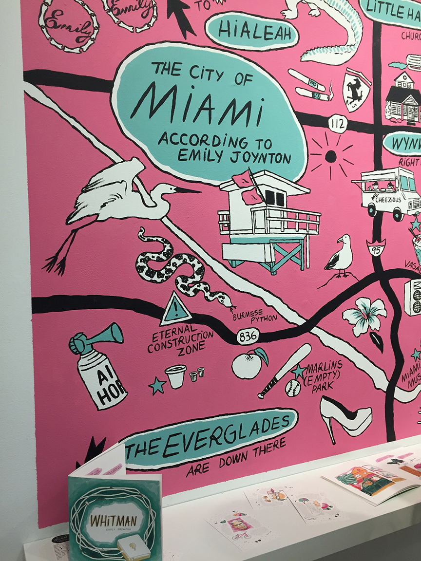 Emily Joynton created hand-painted maps of Miami, Florida and San Angelo, Texas on the walls in the Leidy. Joynton also created small books that incorporate the locations specific to the illustrated stories. This year Joynton was awarded one of MICA’s Graduate Research Development Grants to further her practice.