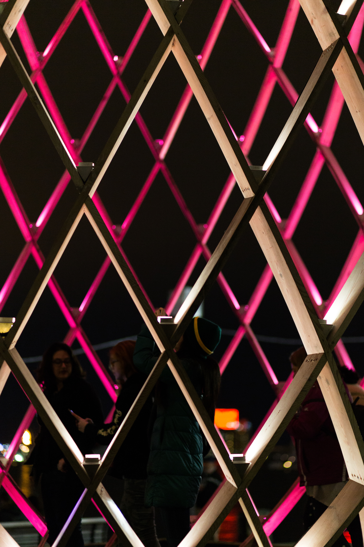 While a festival atmosphere with performances attracts visitors to the free seven day event, what’s unique about Light City is that attendees essentially walk through one giant public art exhibit. Even the crowds enjoying the artwork is a sight worth seeing.