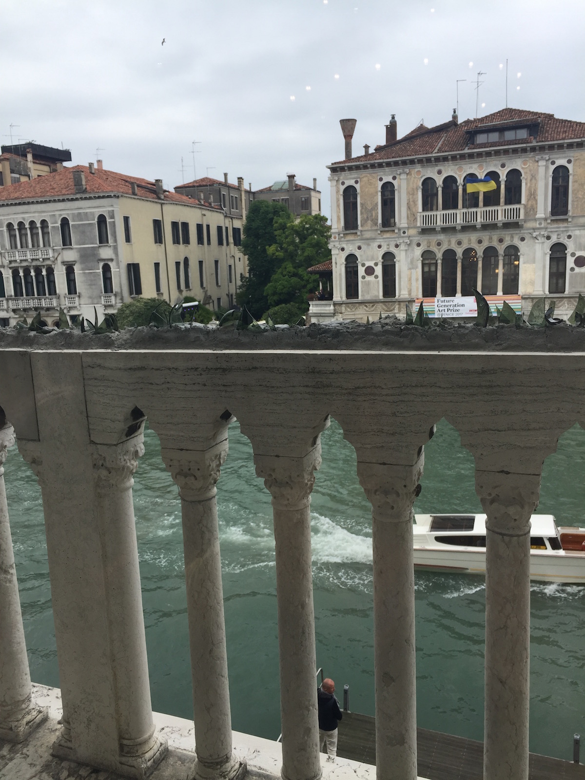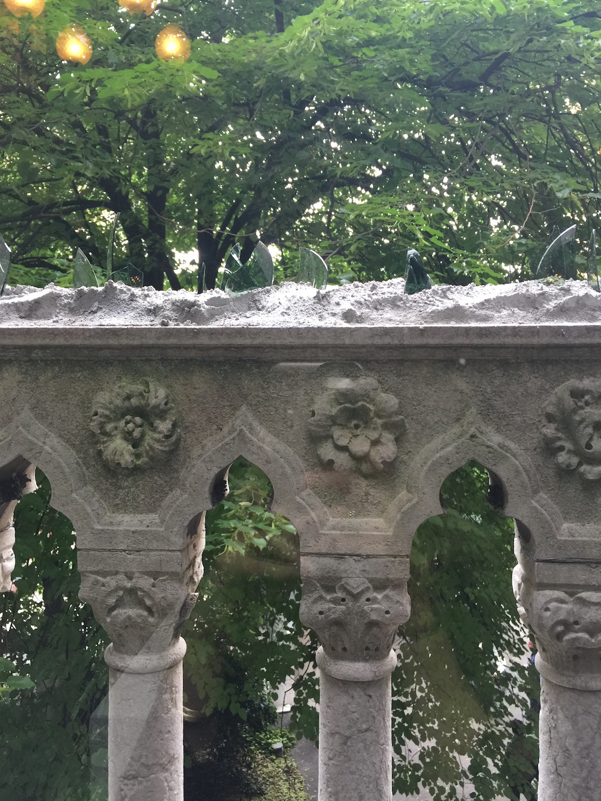 Is it critiquing the building itself and the wealth it represents? Also, the shards are embedded inelegantly in what appears to be cement. There’s an initial ‘ouch’ reaction, but all the piece actually does is prevent one from leaning on the balcony.