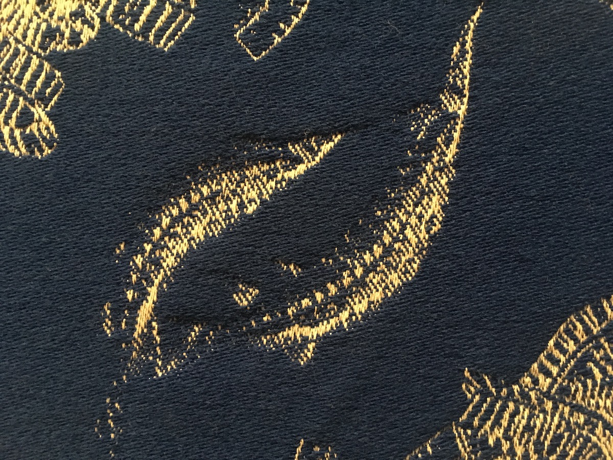 One final point. Too often, I think, we passively assume that digital technologies are simply points of departure, facilitating new possibilities. Thus, for example, the title of this show, which positions the fabric on display as the outcome of digital work, and thus too the claim, in a wall text, that “Couwenberg’s textiles call attention to the ways in which digital technology can contribute to artistic design.” That’s not untrue, but it also seems to me to be only part of the story. For one can fairly argue the converse, as well, by pointing out that certain fiber arts actually embodied, long ago, the sort of binary logic that only later came to underlie all digital technologies.
