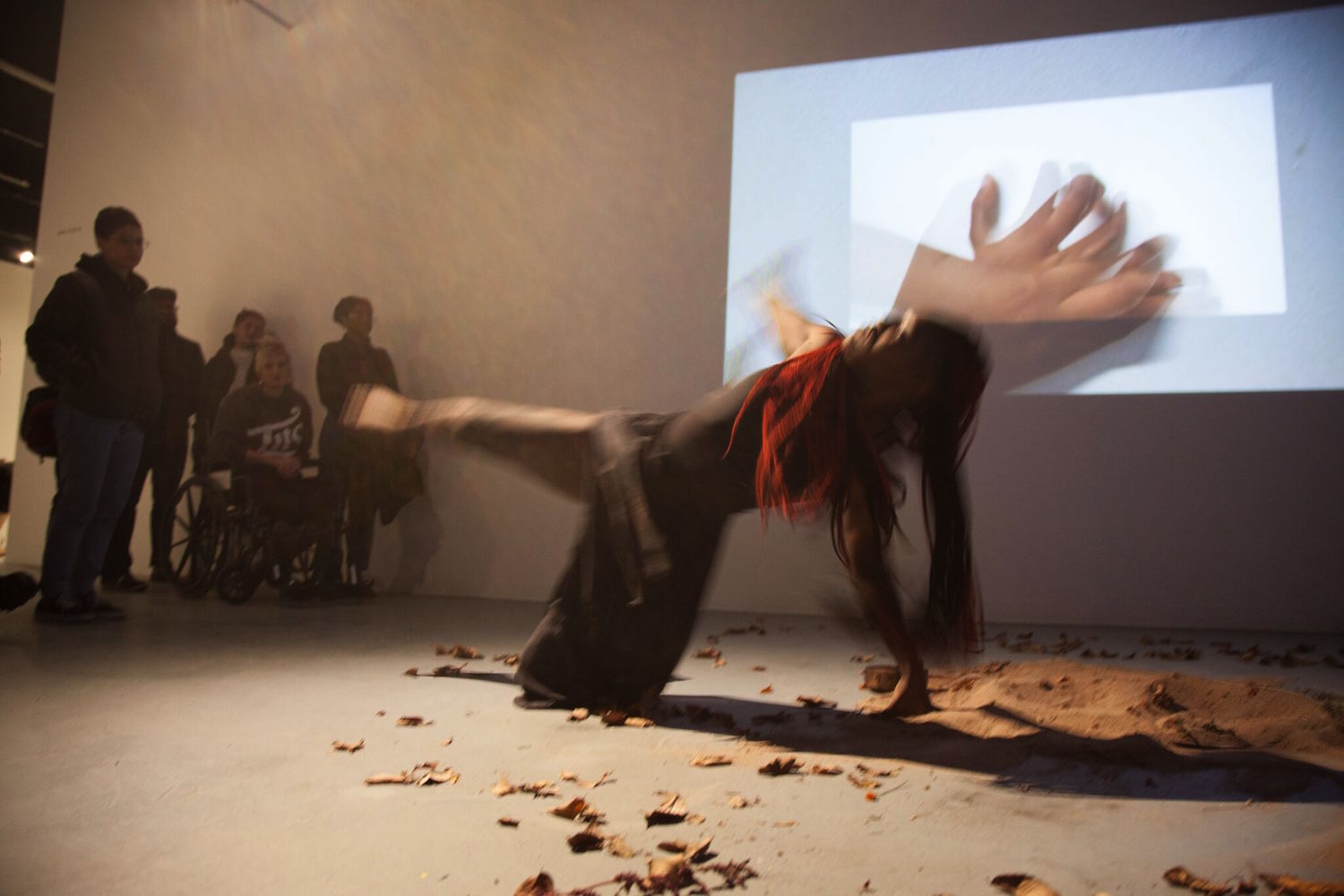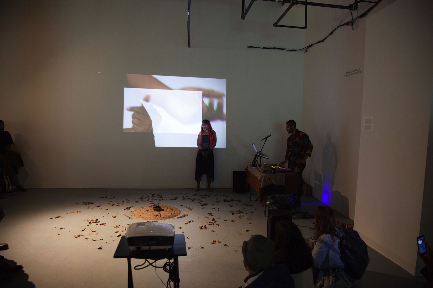 The last performance, “Eroica,” a collaborative effort from Erik Antonio Benitez and Domineka Reeves, combined a multimedia installation comprised of video and sound projections with modern dance. The core of the performance is an examination of origins, roots, and the impact that knowing (or one’s inability to know) has on the identities of African American women.