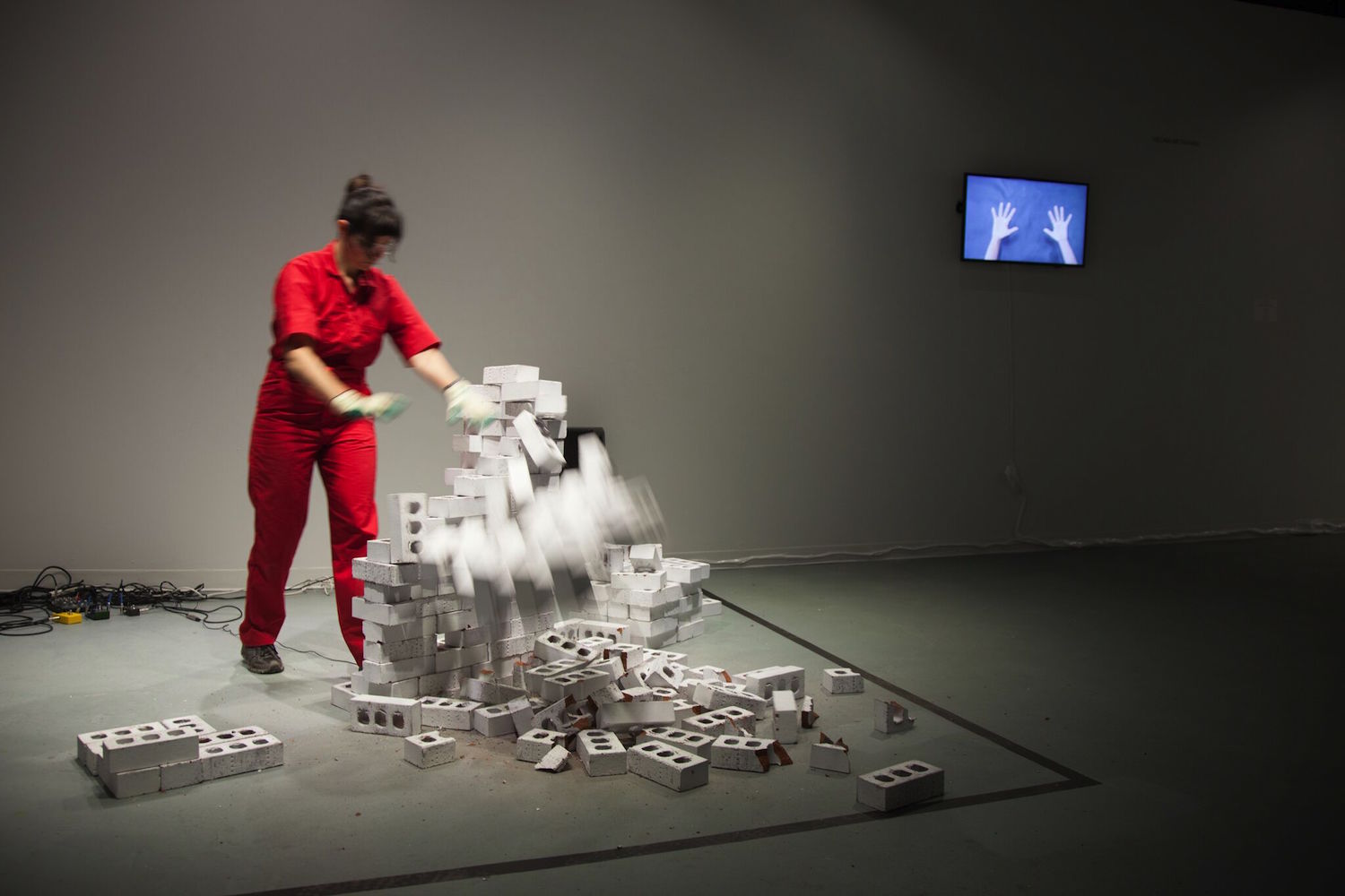 As Fucile toppled her frail structures and backed away to avoid the projectile scatter of brick fragments against the gallery floor, I wondered what kind of reformative processes ‘white cube’ arts institutions would have to engage to become less exclusive, less elite, and more reflective of their surrounding communities. What needs to be shattered and what will be resurrected in place of what was lost? “Can we free ourselves from these tangled structures?” Fucile asked in the accompanying wall text, stating that “Occupational Enterprises” demonstrates the ongoing effort to do so.