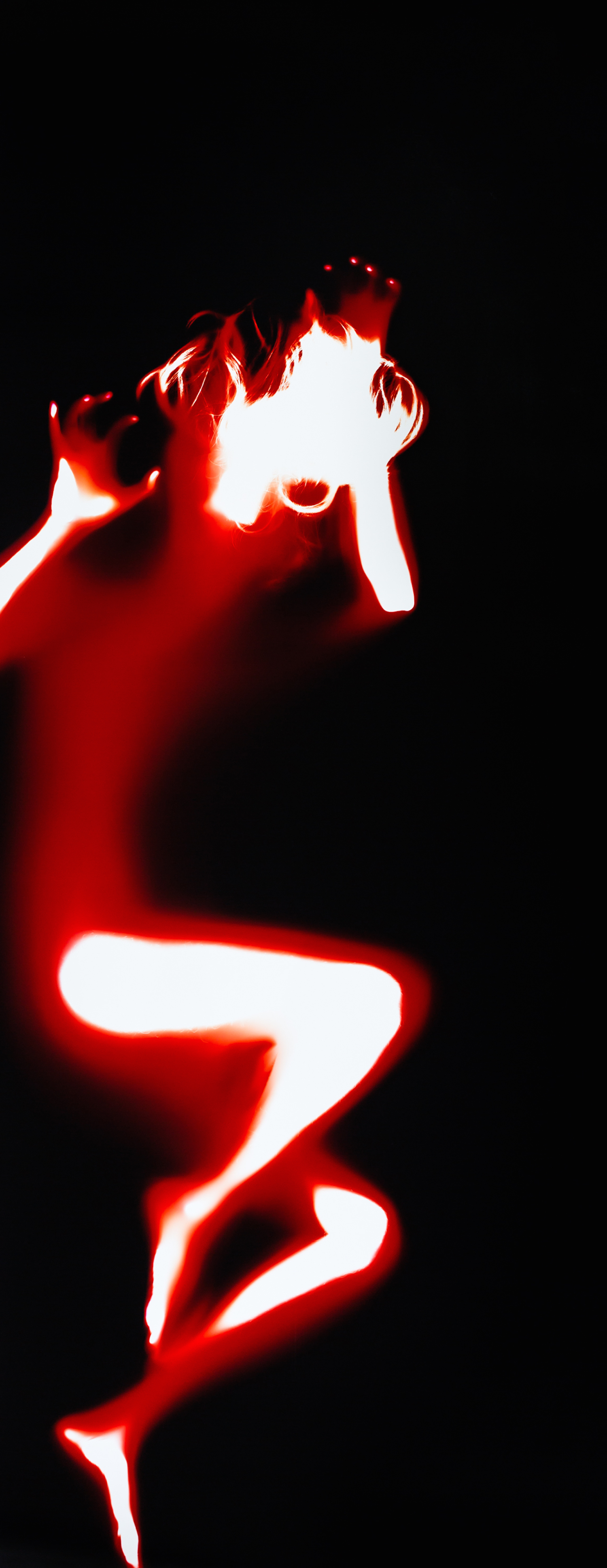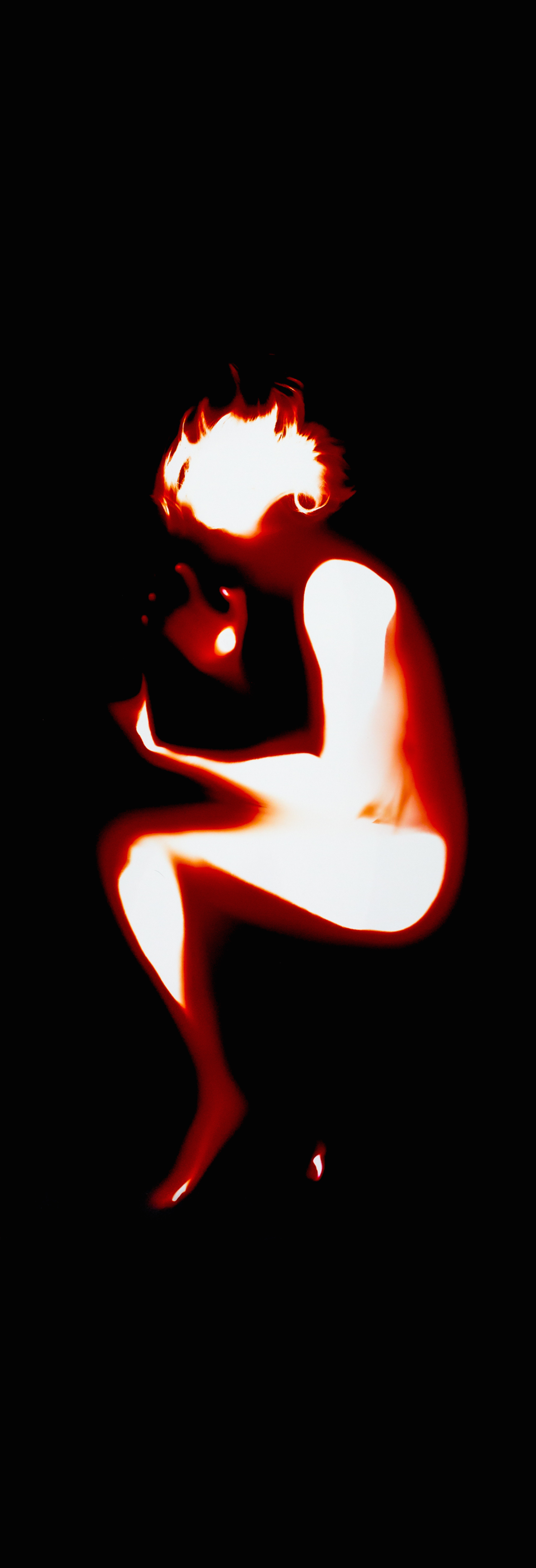 The results of Ito’s rhythmic and symbolic process are arresting. The chromogenic color prints evoke the powers of duality, presenting organic and free-form black shadows, which envisage Ito’s breath, against an intense color burn of inorganic atomic reds, oranges and yellows. Without context, a viewer could quite possibly interpret the prints as photographic executions of the womb. Or, an atomic blast.