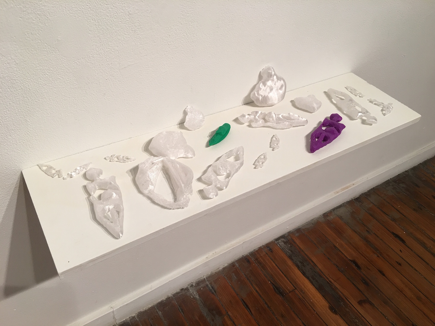 According to Webb, the most quintessential representation of the exhibit’s themes can be found in the work of LoVid. The artistic team has brought pieces from their series titled Video Taxidermy to School 33. The pieces in this series are created by recrafting analog videos and converting them into “single channel pieces.” The pieces are printed onto fabric and become malleable physical sculptures.