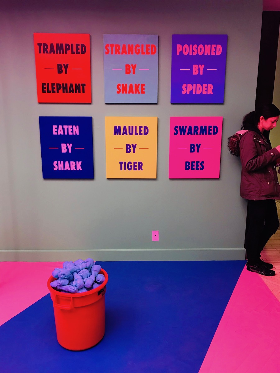 Thank Goddess for Press Passes! The lines. OMG. The Armory Show, the main attraction at NY Art week, is so large it’s hosted on two separate piers on the Hudson, both full of insane amounts of people. I guess I should be happy that so many humans with busy lives were willing to wait, uncomfortably crowded together in the freezing cold in the name of art, but… really? Was it the art or just FOMO? Even the VIP line was clogged to hell. The line for press was wide open or I probably wouldn’t have bothered.