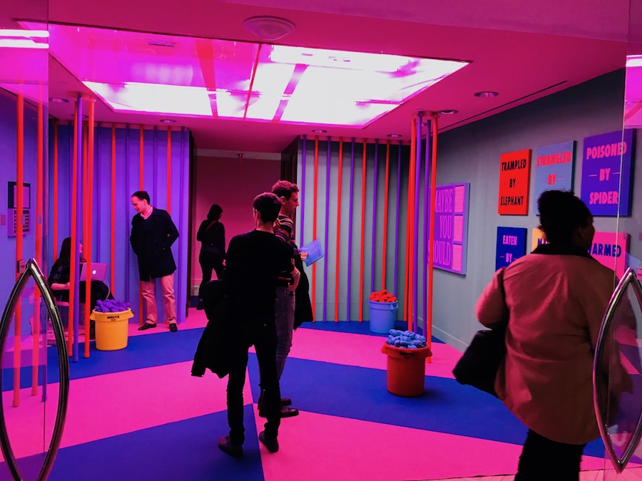 SPRING/BREAK Art Show is a love fest. SPRING/BREAK is so excited to see you! SPRING/BREAK is a little overbearing and sloppy, but so friendly. This fair is for young artists and those who love them. Much less commercial than the others, it’s a sprawling community of curatorial projects featuring young and established artists (mostly young), thematic exhibits, and experimental performance. There’s a joyful, anything goes vibe here and an emphasis on artists and ideas, as well as curators taking risks.