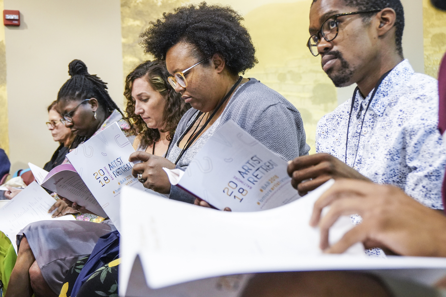 BAR2018 featured topical workshops, panel discussions, seminars, and presentations by participating artists. The retreat was free for 40 selected artists from the Baltimore region and included transportation to and from the center, lodging, and meals.