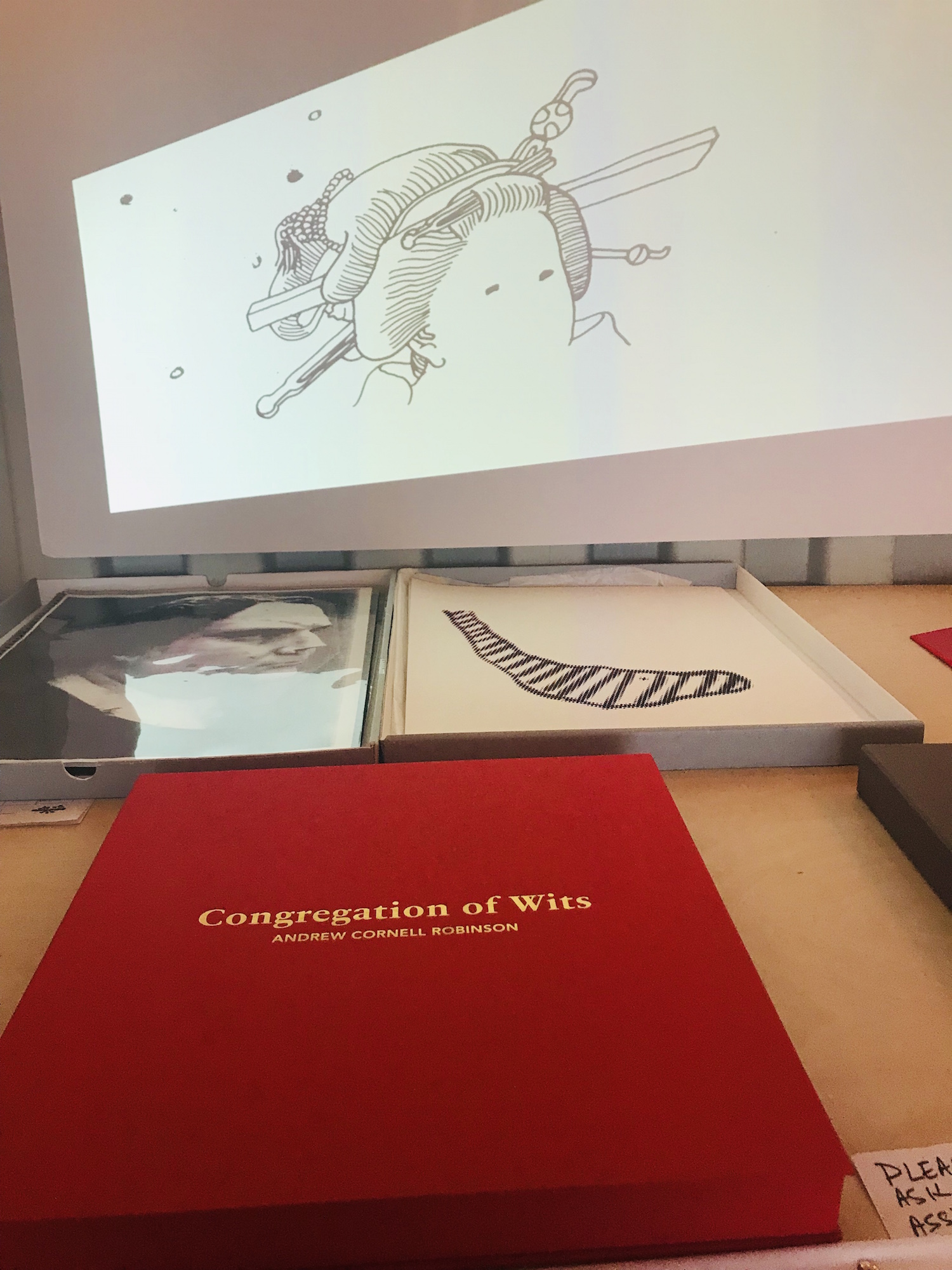 TANGA presented a stand-up comedy installation (left) and on the right, Arts + Crafts Research Studio presented To Hell With Culture: A Congregation of Wits was presented in book and animation form, which worked interchangeably well together. I think more artists should consider even simple animation sequences; it’s a great way to experience drawing, especially a series of drawings. When done well, as it was here, the movement and choreography of the animation echoes the aesthetics of the drawings. I stood here for a long time; it was poetic and beautiful.