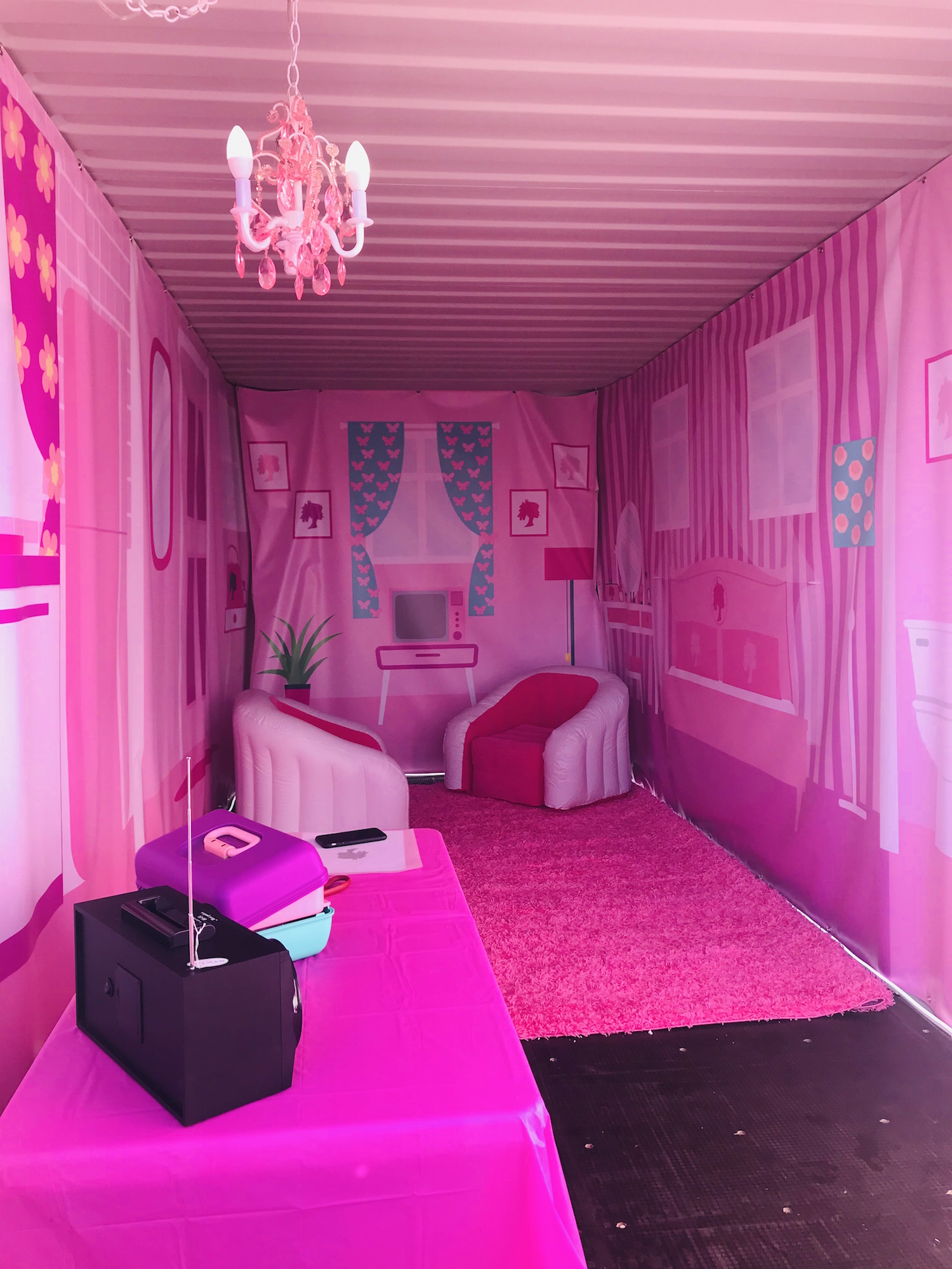 The Dream House Trailer is a hot pink Barbie dream–or nightmare, depending on your aesthetics and psychological damage suffered in childhood. For parents who want to avoid Disney Land, this could have been it’s cheaper, trashier cousin; a barbie dream house realized at human scale in a trailer.