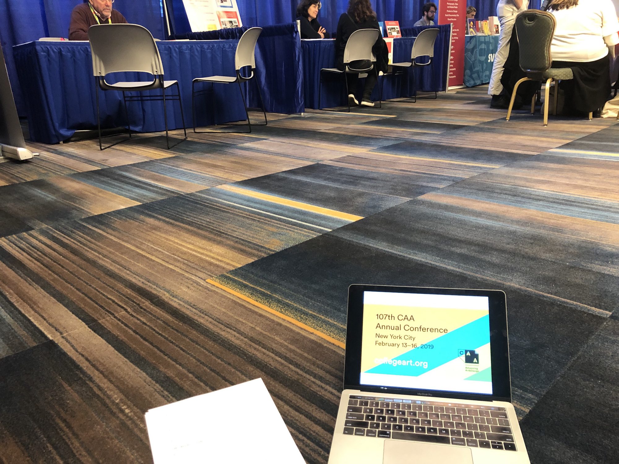 Every two years, museum professionals and professors of art history and studio art gather from all corners of the globe at the College Art Association’s New York City conference for four days of fellowship, conversation, and exchange in New York. (The conference is held in Chicago in the intervening years when it’s not in Manhattan.) Last week, scattered throughout the New York Hilton Midtown’s extensive (and rather dated) conference facilities were art professors sitting around tables, chatting in clusters, and lying on the floor charging their devices.
