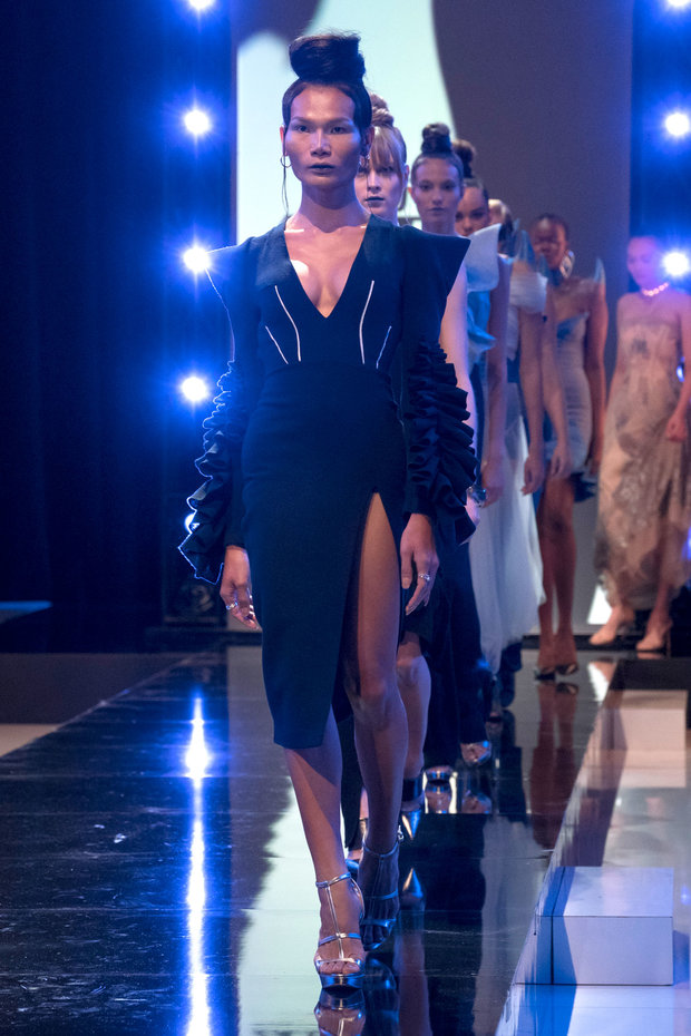 What’s most remarkable about Cromartie’s artistry is his audacious versatility. Looks from his Fall 2018 collection combine fringes and regal, draping lines with fitted, accentuated waistlines. In his gowns, he often delivers a full-on glamour reminiscent of Oscar de la Renta’s work, or the iconic costumes of Edith Head during Hollywood’s Golden Age. That boldness and clarity of intention consistently runs through his work. His style mesmerizes, seduces, and stops the show.