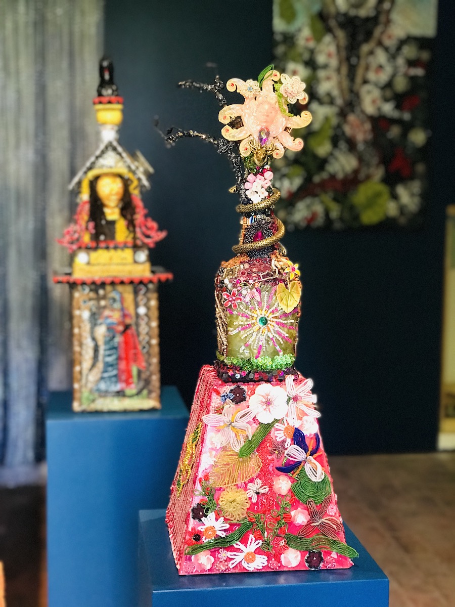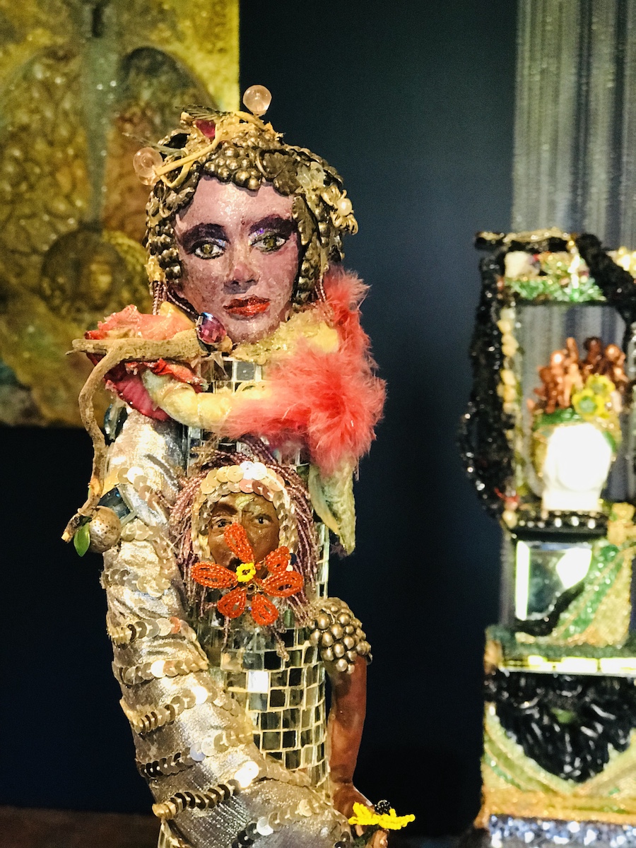 Oletha DeVane’s “Saint for My City” can turn any room into a sacred space. The mixed-media sculpture features what looks like the Virgin Mary atop a tall pedestal, an eruption of ideas and colors. DeVane made the 2009 piece as a response to Baltimore’s gun violence, and it sadly remains as pertinent now as then.