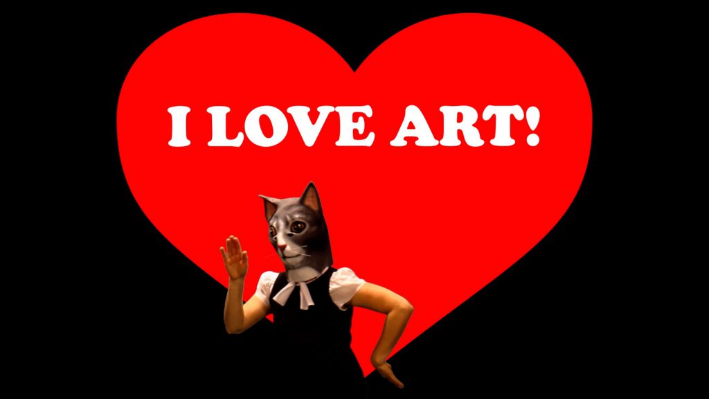 CF: Yes. We had to write a written thesis and do work that accompanied it. The piece that I did for that was “Google Art Video,” which is two women discussing art in such a way that—one is sort of undermining the other. It’s an inner monologue divided into two voices, and in that piece I started introducing all these symbols of comedy: a banana, Groucho glasses, fake eyebrows, and other things referencing comedy. And—this is funny—my mom told me that my thesis was really good. She was like, “Oh, honey, this is such a good piece,” and told me that I should do something with it.