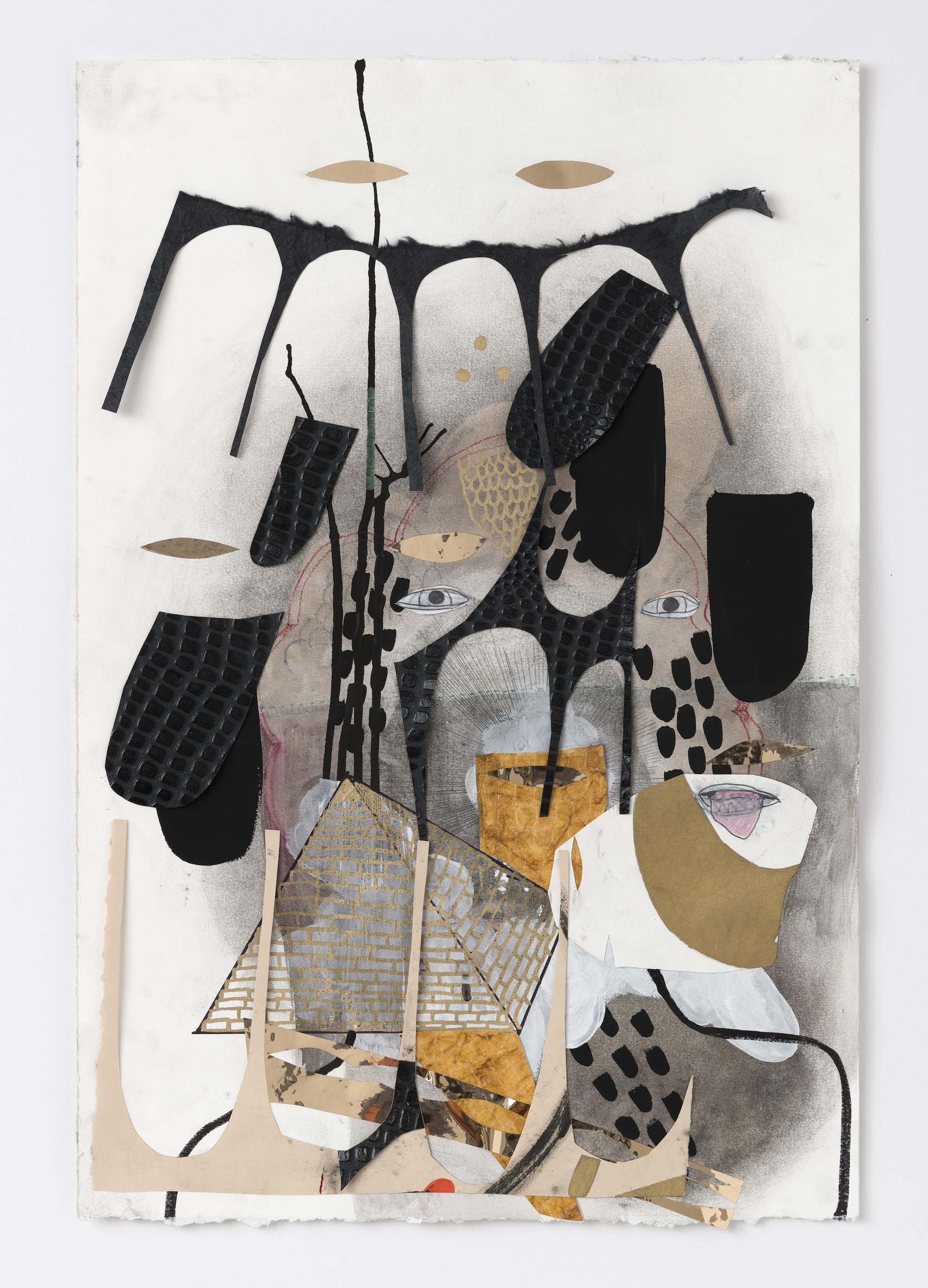(L-R) “Warriors,” 2018, mixed media on paper and “Arches,” 2018, mixed media on paper