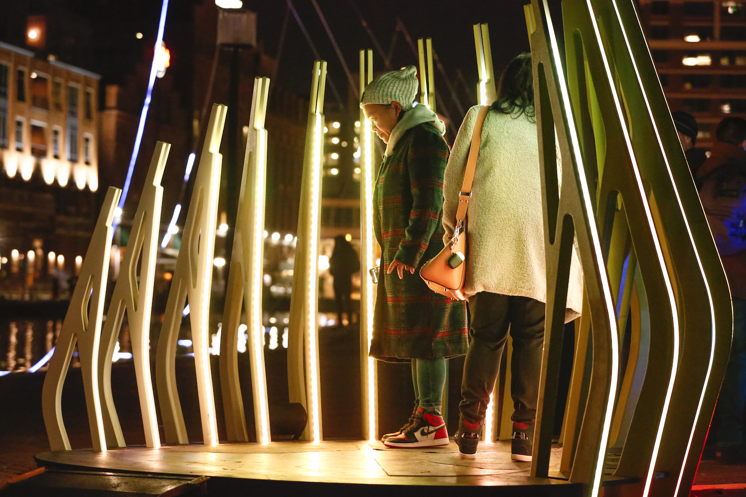 As in past years, Light City featured a Light Art Walk at the center of its offerings with light installations and sculpture, performances, concerts, a family zone, giant ferris wheel, and the partner program called Neighborhood Lights where artist projects were installed across the city with support from BOPA. The festival’s food and beverage offerings were 100 percent local, reflecting Baltimore’s burgeoning cuisine scene.
