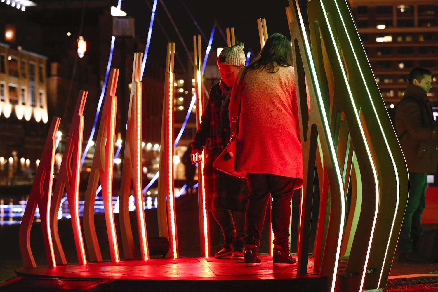 Sunday, November 10 was the grand finale of the festival and featured a fireworks performance sending a blaze of color across the Inner Harbor basin. Photographer Jill Fannon was on site to capture the spectacle, the artwork, and the visitors to Light City 2019.