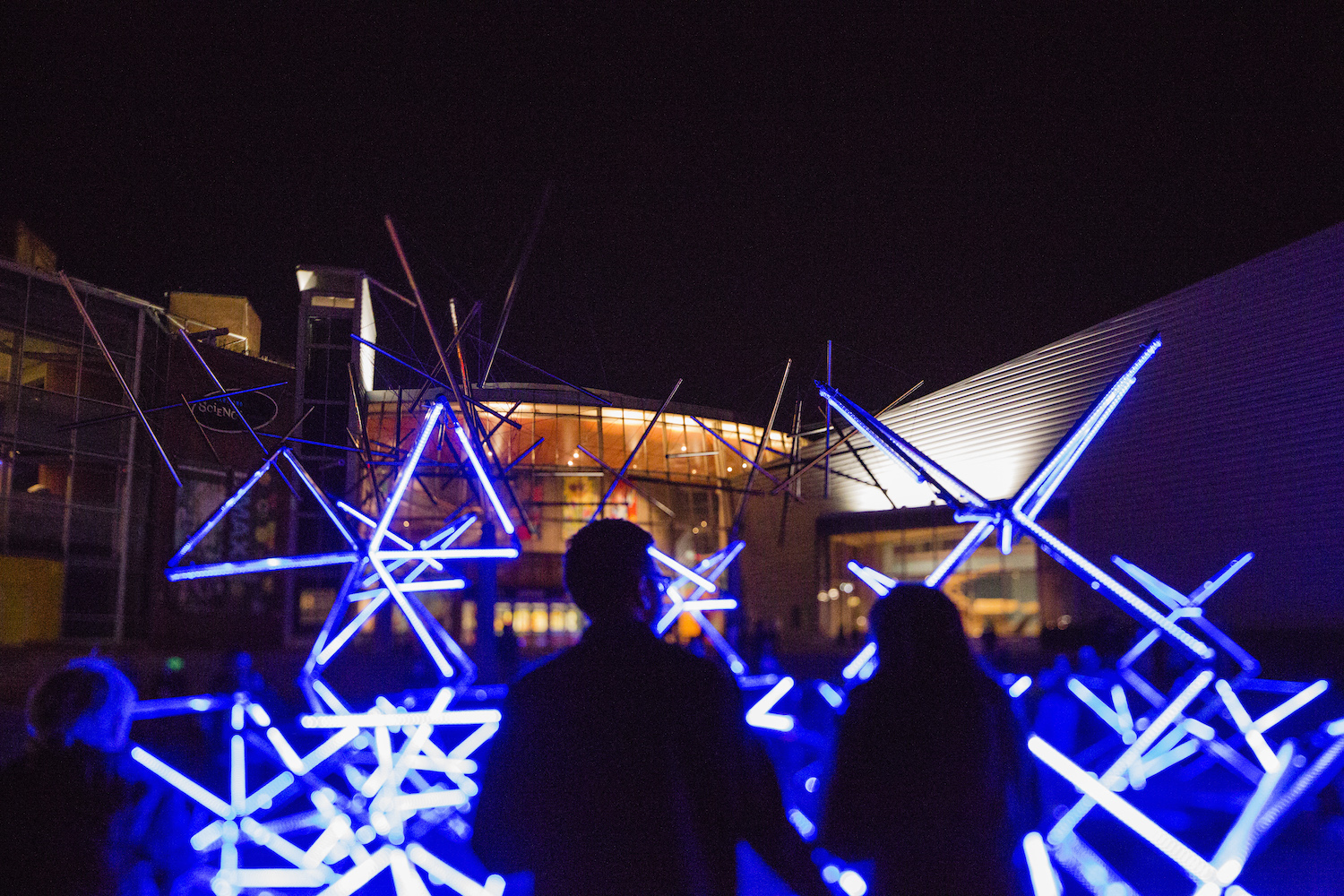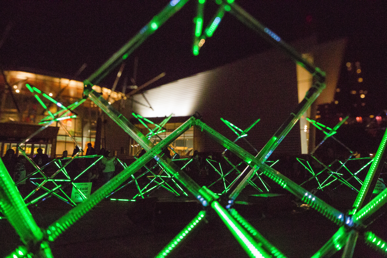 This year was the fourth year for Light City, Baltimore’s festival of light, music, discussions, and innovation, organized by the Baltimore Office of Promotions and the Arts. Hosted in Baltimore’s Inner Harbor where the lights twinkle across the water for a maximal effect, this year’s event was moved from March to November and combined with the Baltimore Book Festival under the new name of Brilliant Baltimore.