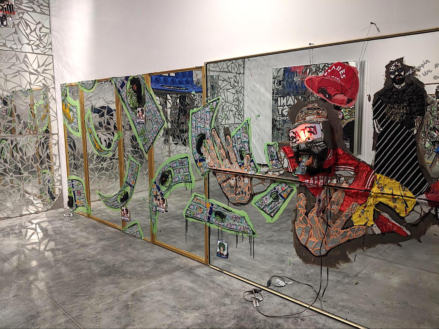 Rachel Harrison (foreground) and Sayre Gomez (background) at Nagel Draxler. Even the less-explicitly political works at Nagel Draxler feel relevant because they’re just so good. Rachel Harrison’s hilariously titled sculpture “Frank Stella #2” features a Hanson mirror I like to imagine came from the artist’s tweenage bedroom and is now at Art Basel. Amazing.