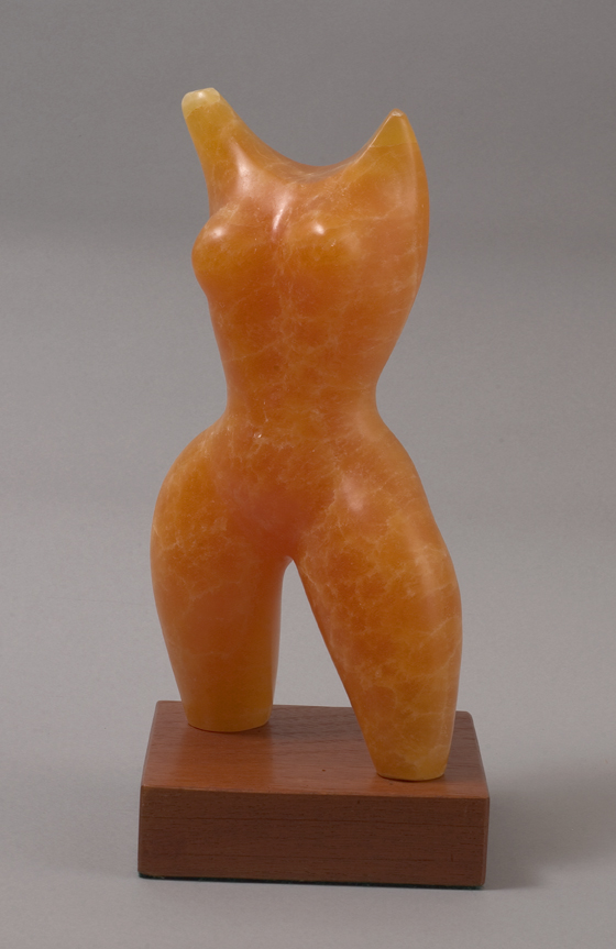 Elizabeth Catlett, L: “Chile II,” linocut (1980) and R: “Nude Torso,” orange onyx. Above: “Madonna,” lithography (1982)