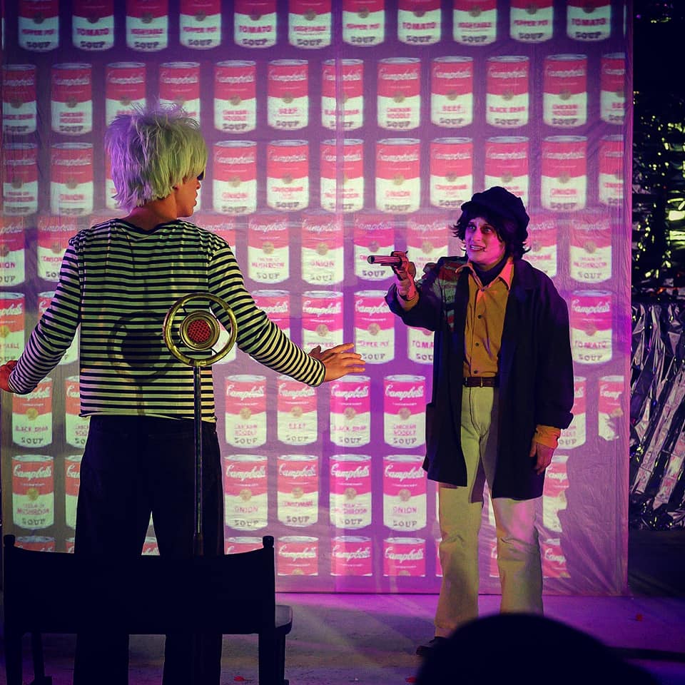 Pop: Who Shot Andy Warhol?, the 2009 musical with book/lyrics by Maggie-Kate Coleman and music by Anna K. Jacobs, is ahistorical, apolitical, amodern, and absolutely entertaining. The roughly 80-minute musical treats Solanas’ 1968 shooting of Warhol at the Factory as a moment to invent an Agatha Christie-ish whodunnit, where any one of the above superstars may have had a motive to commit murder in a moment of passion. (Solanas actually turned herself into the police and confessed to the shooting.) It’s a story of pure imagination, and any fan of Warhol’s freewheeling ’60s, art oeuvre, writings, and interviews will recognize all the allusions that Pop! makes to that era’s ostensibly insouciant decadence.