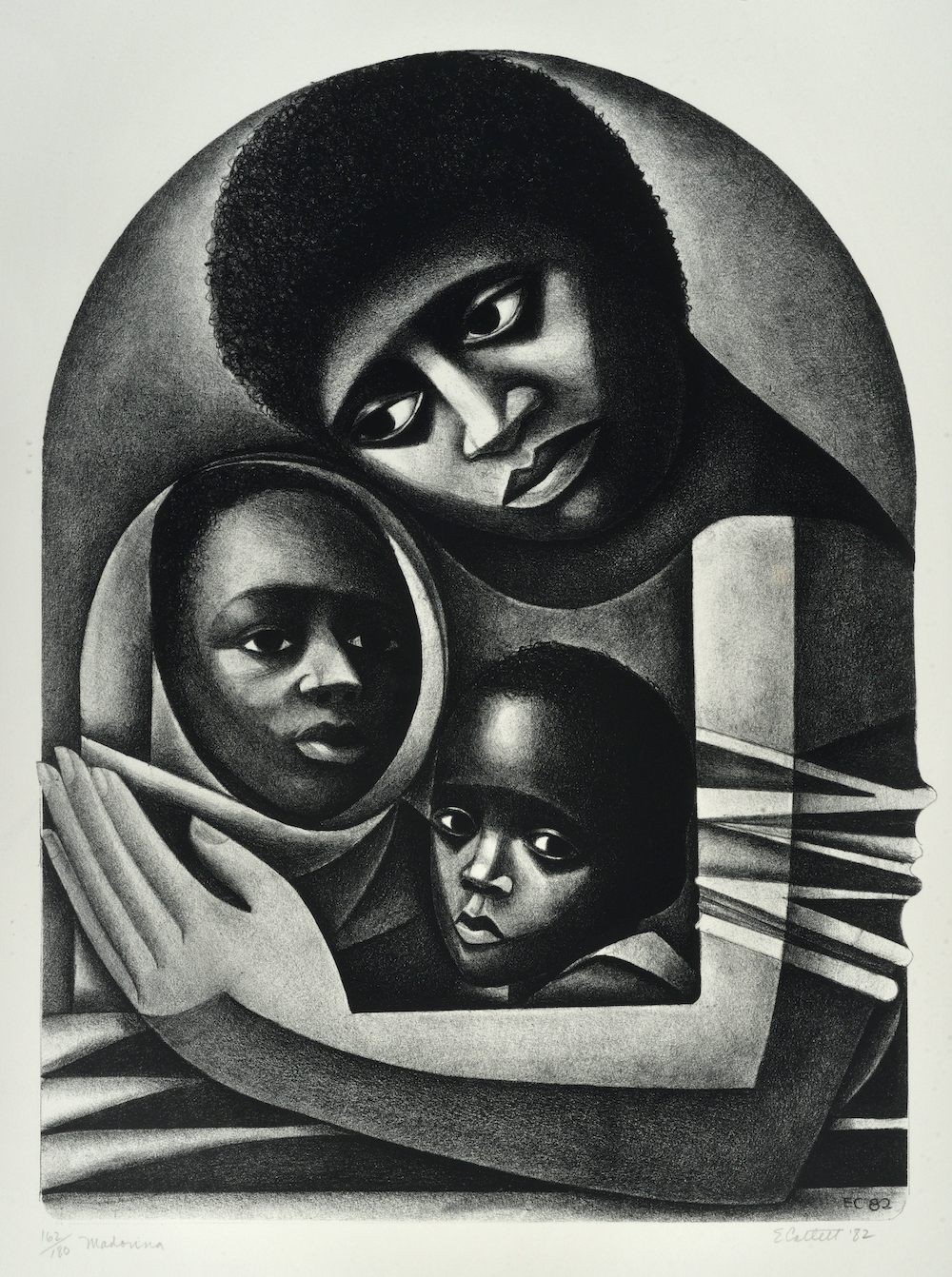 “People aren’t thinking, they’re waving flags,” said artist Elizabeth Catlett in an interview, worrying about the state of America and its rush towards fascism. It’s unclear when the interview was recorded, though it was posted to YouTube in 2010, and I would guess it took place in the early 2000s given a few context clues, including that era’s particular rise in blind patriotism. The statement’s specific context, though, matters less than its content: Catlett’s observation is one of those timeless truths; it obviously rings true today, but she could have also said it while growing up in segregated Washington, DC, or in 1962, becoming a Mexican citizen and relinquishing her US citizenship when it listed her as an “undesirable alien” because of her leftist politics. Though she had regained her US citizenship in 2002, she lived in Cuernavaca, Mexico, until her death in 2012.