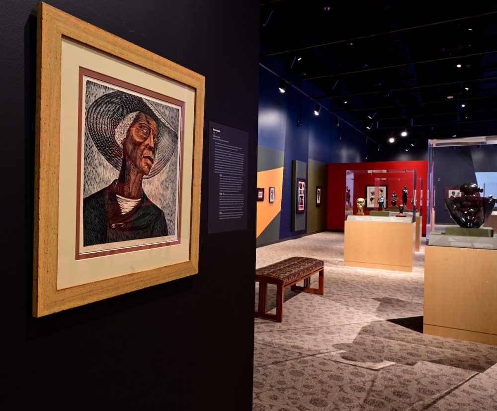 The Reginald F. Lewis Museum’s dynamic exhibition Elizabeth Catlett: Artist as Activist, curated by museum director Jackie Copeland, tracks the artist’s career and her recurrent themes of the valorized worker and the industrious woman. The exhibition is bookended by portraits signifying laborers in the US and Mexico—and at its center, women, children, and mothers recur as frequent subjects, along with a few recognizable abolitionists and icons. This structure suggests a motivation for wide-ranging solidarity; here there’s no distinction between the labor of raising a family, field work, and movement work.