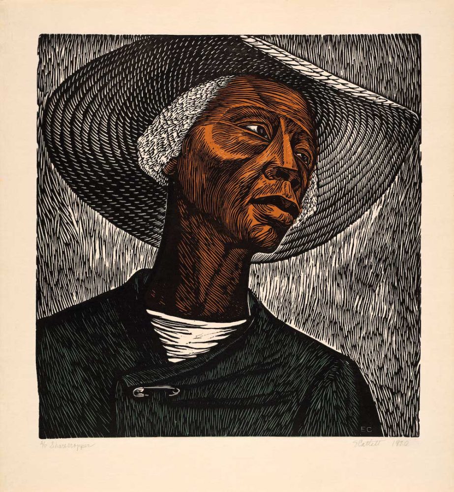 Throughout her career, Catlett’s work was consistently just as prescient—and present with her own time and place—as that statement. After moving to Mexico City on a fellowship in the 1940s, she got involved with a print workshop where her activism was tied to her work—she demonstrated with fellow artists, printing signs and pamphlets supporting union workers on strike. Her prints and sculptures uplifted the worker: Field workers, sharecroppers, mothers, grandmothers (and occasionally fathers too) share space in her oeuvre with abolitionists and civil rights icons, everyone with dirt under their fingernails, everyone in all of their ordinary glory.
