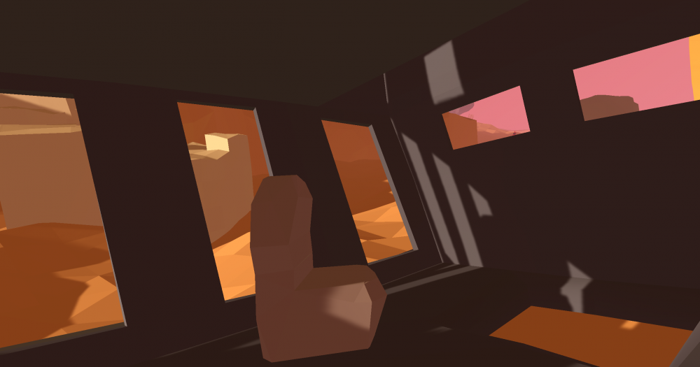 Desert Mothers is a two-player game where, using an Xbox controller, you play as a character—a bald and naked humanoid meditating—sitting in the desert able to look up and down and all around and move your arms (you can’t get up and walk around) and catch a glimpse of your double, whose movement is similarly limited and right next to you, likely experiencing something totally different. Look down and your foot pokes out of the sand, look around and hey, there are some trees. Hit the “Y” button on the controller and your point of view changes and all you see are part of your hands and a sky. You’re somewhere else maybe—an on-DMT-like cutaway where for a moment you’ve popped your cloudy head in another dimension. Hit “Y” again and you’re back in the desert. Music that sounds like somebody lackadaisical strumming a guitar or blowing on a horn plays, and depending on what buttons you mash and how, it gets windy or stormy and the sky darkens. Squiggly lines, like stray hair on a film print, jaggedly dart across the screen—it is getting stormy or you’re entering a difficult trip, you decide.