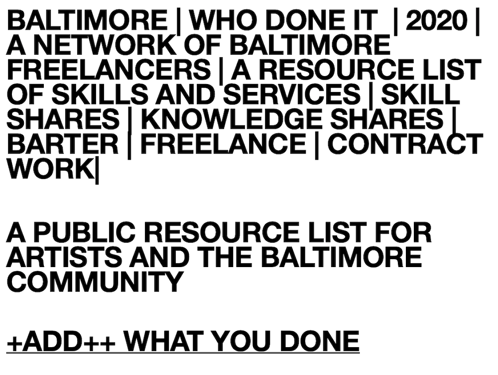 The Baltimore Artist Emergency Relief Fund is a coalition-led initiative designed to provide direct assistance to Baltimore-based artists and creative entrepreneurs who have lost income due to the COVID-19 crisis.