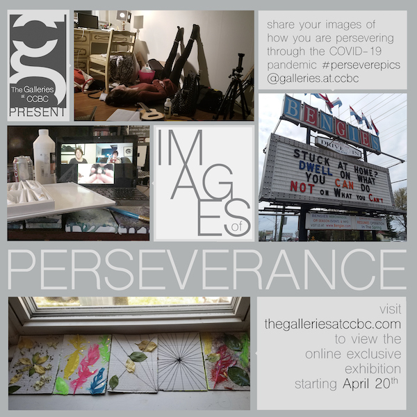 As a part of the programming, the Galleries at CCBC are encouraging the community to share their Covid-19 experiences by posting images with the #perseverepics on Instagram. Every week, the gallery staff will review the images under this hashtag, and one will be featured here on the exhibition website.
