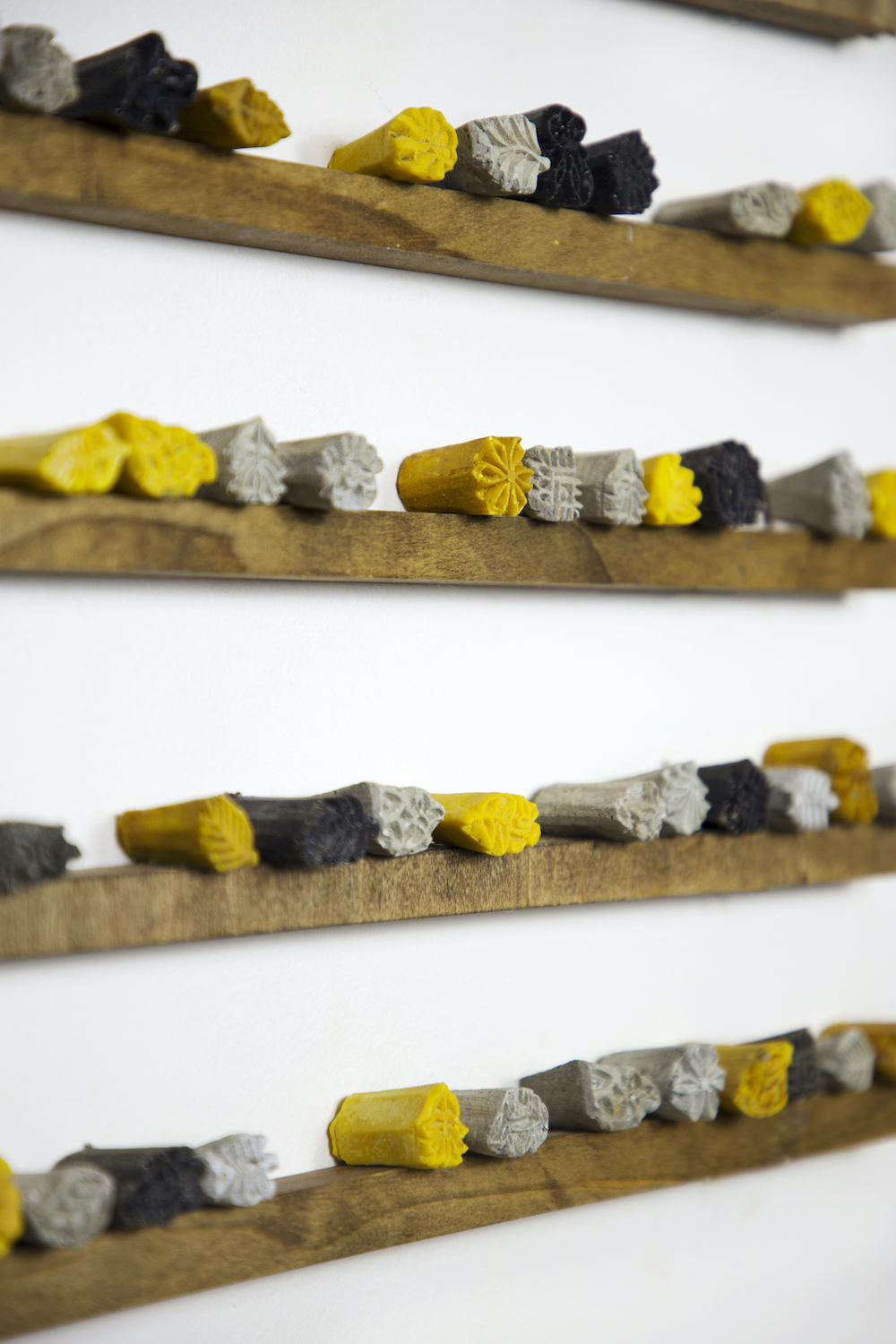 Meghana Gavireddygari, Letter (Passage to India), cement, turmeric & tea casts of wood blocks, wood