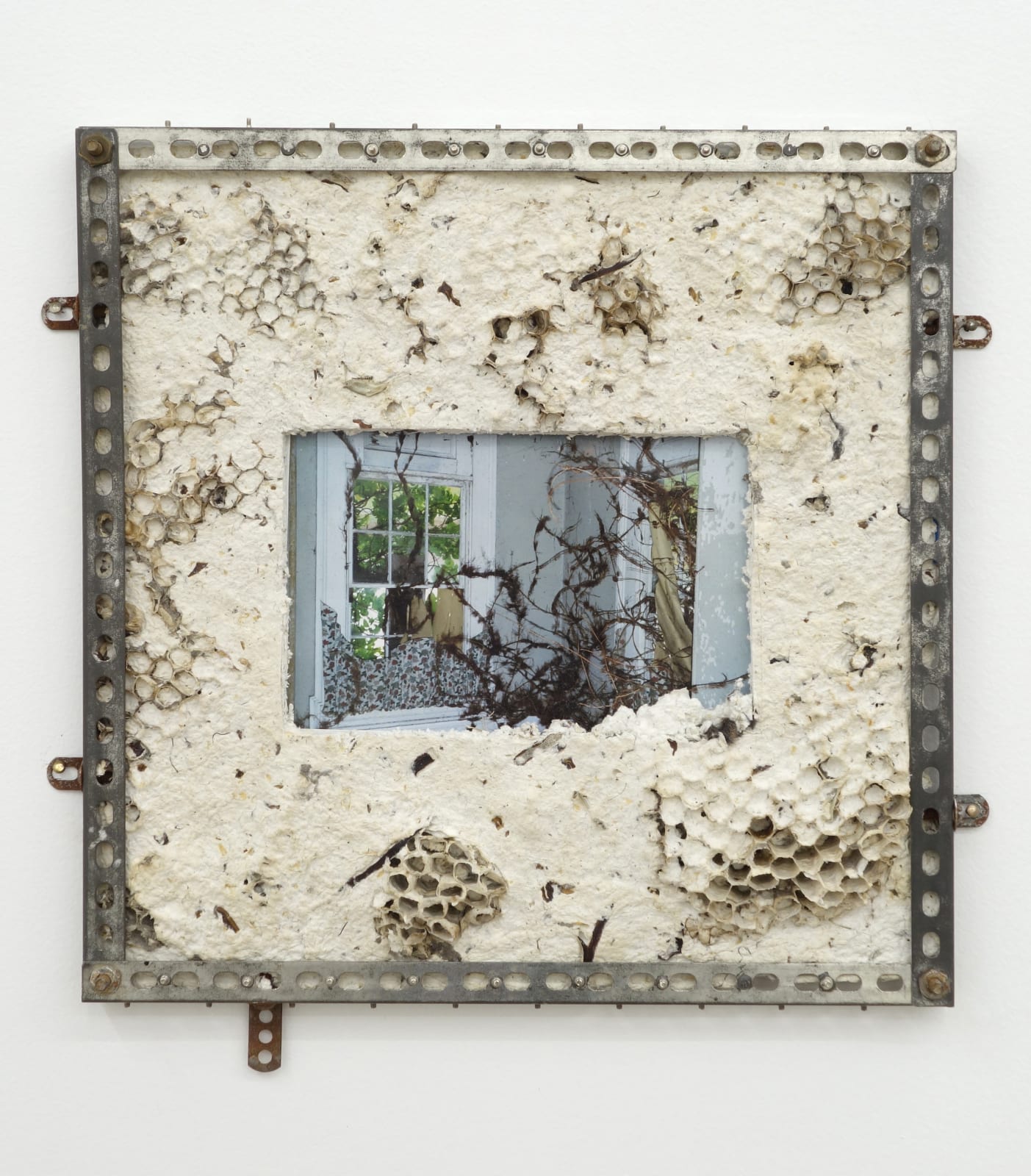 Sydney Shen, Co-Morbidity, 2017, C-print, handmade paper (hornet nest, Tremella fuciformis, Nostoc flagelliforme, bean curd, vermin remains harvested from owl pellets, cellulose), artist’s frame, 10.5 x 10.5 inches