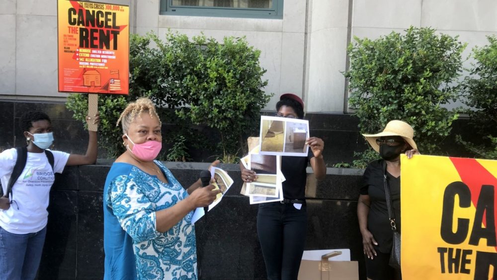 “We are calling on the mayor, the governor, to show humanity, and good common decency to extend the moratorium, to cancel the rent,” Baltimore renter Lillie Robinson said yesterday through a microphone to the crowd of 50 people.