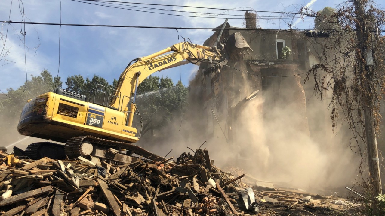 As she spoke, a pair of yellow excavators had already knocked down half of the 2200 block of Druid Hill Avenue, billows of yellow and black smoke rising in their wake.