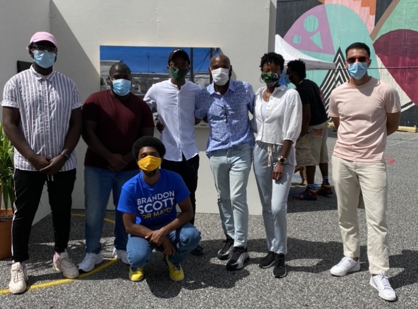 Artists with Baltimore City mayoral candidate Brandon Scott (photo by Teri Henderson)