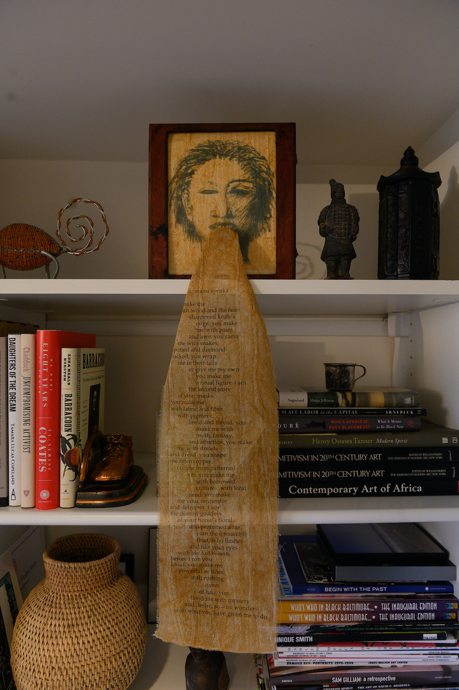 The first piece of art Jackie Copeland ever bought is mounted on a wall right next to her desk in the second-floor study of her Pikesville home. It’s a wooden plank mask from the Mossi people of West Africa that Copeland, the former executive director of the Reginald F. Lewis Museum of Maryland African-American History and Culture, bought when she lived in Chicago in 1975.