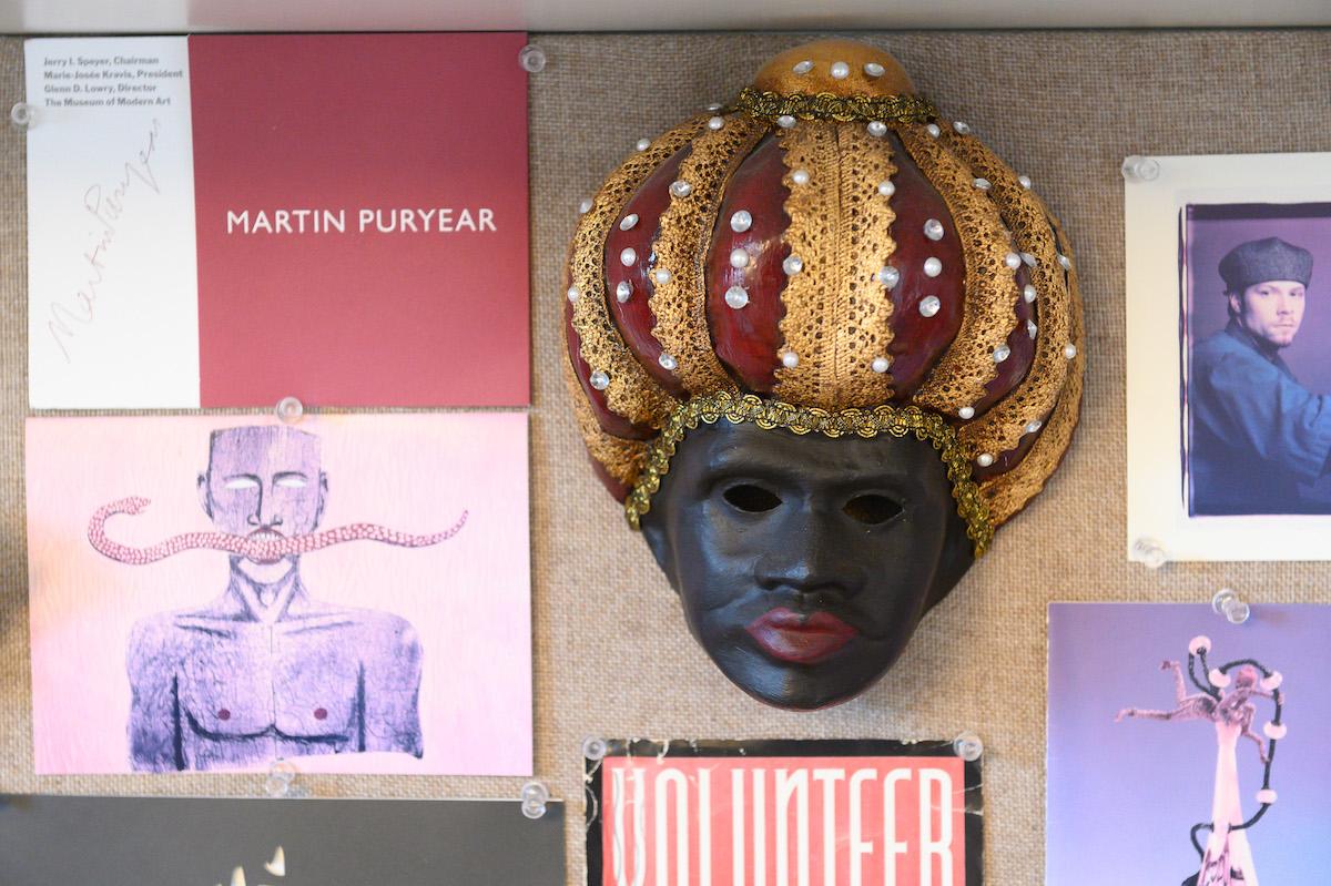Opposite her desk is a compact sofa, on which sits a pillow whose cover features a textile rendering of a Black woman in soft pink holding an expansive bouquet. “A friend of mine gave this to me,” says Copeland, reaching for the pillow. “It’s from Manet’s Olympia. It’s the maid that is handing her the flowers.” She points out other items in her collection—Black memorabilia, daguerreotypes. “This is my little area here, a collector’s study. I love it.”