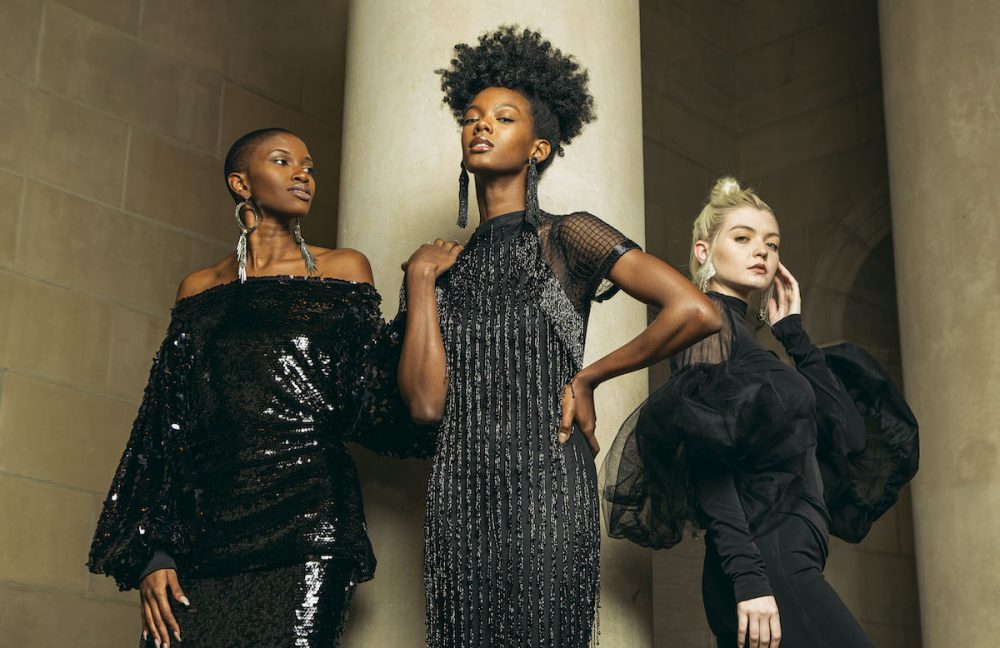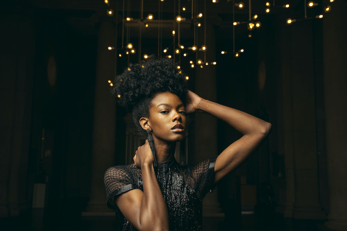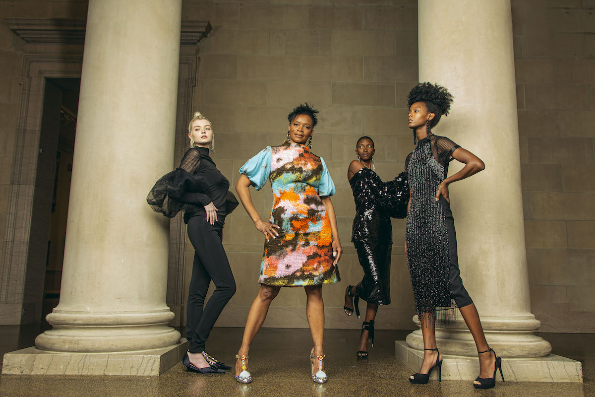 Her fashion line, Jody Davis Designs, recently celebrated its tenth year, and her garments have been worn by the likes of television journalists Soledad O’Brien and Gayle King. Davis favors form-fitting silhouettes with thoughtful details, balancing classic design with avant-garde touches. On an otherwise simple white dress, puffed sleeves and a center high neck create a sense of strength. Beaded fringe on the body of a little black dress shimmers with movement, while its sheer cap sleeves feature an understated grid-patterned lace. Davis pays attention to every element—the trim, the zippers, the buttons—they’re all important.
